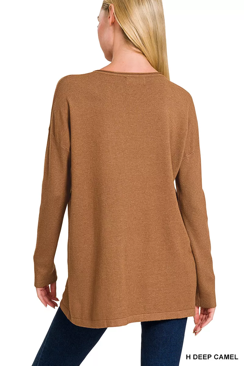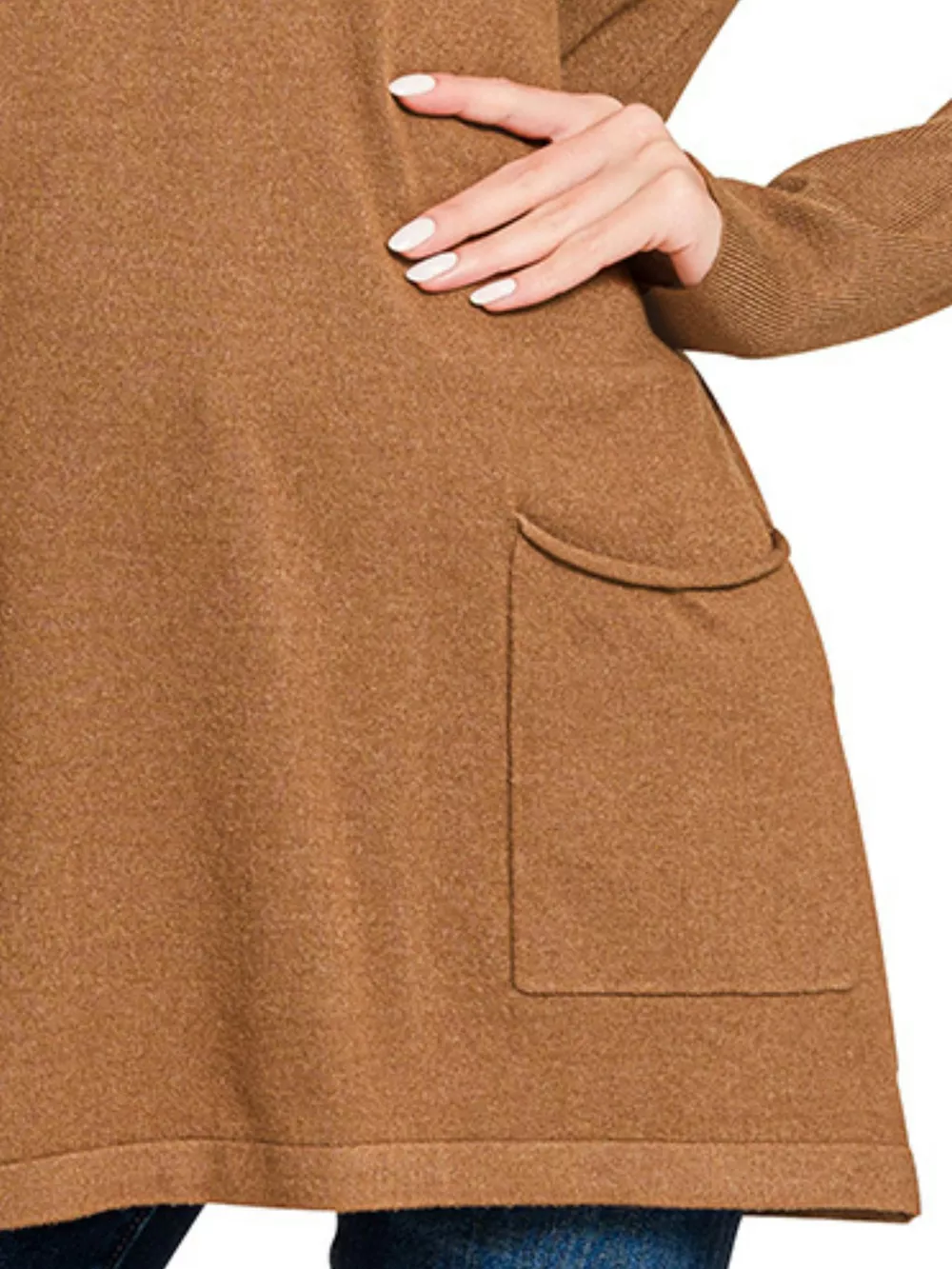 Zenana Viscose Long Sleeve Front Pockets Sweater