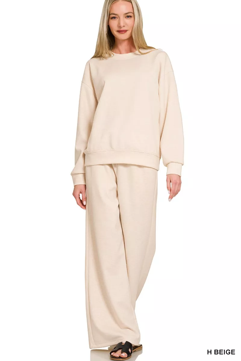 Upgrade your casual wardrobe with this Scuba Crewneck Pullover and Pants Set, crafted for both style and comfort. The crewneck pullover offers a cozy fit for everyday wear, while the matching pants complete the look with a coordinated ensemble. The set features a modern scuba fabric that adds a unique touch to your outfit. Perfect for lounging or casual outings, this set is a versatile addition to your collection. Elevate your cozy chic style with this trendy and comfortable pullover and pants set.