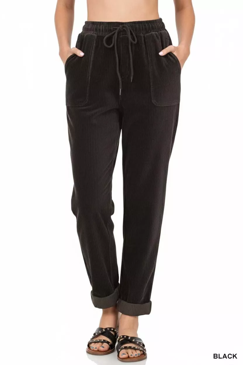 Zenana Corduroy Drawstring Cuffed Pants