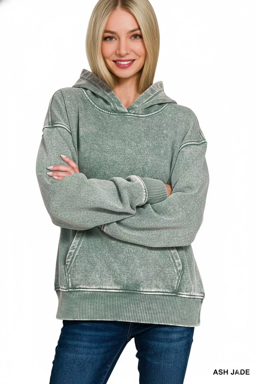 Zenana Fleece Acid Wash Kangaroo Pocket Hoodie