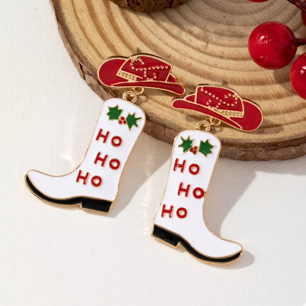 Christmas Cowboy Hat and Boot Dangle Earrings
