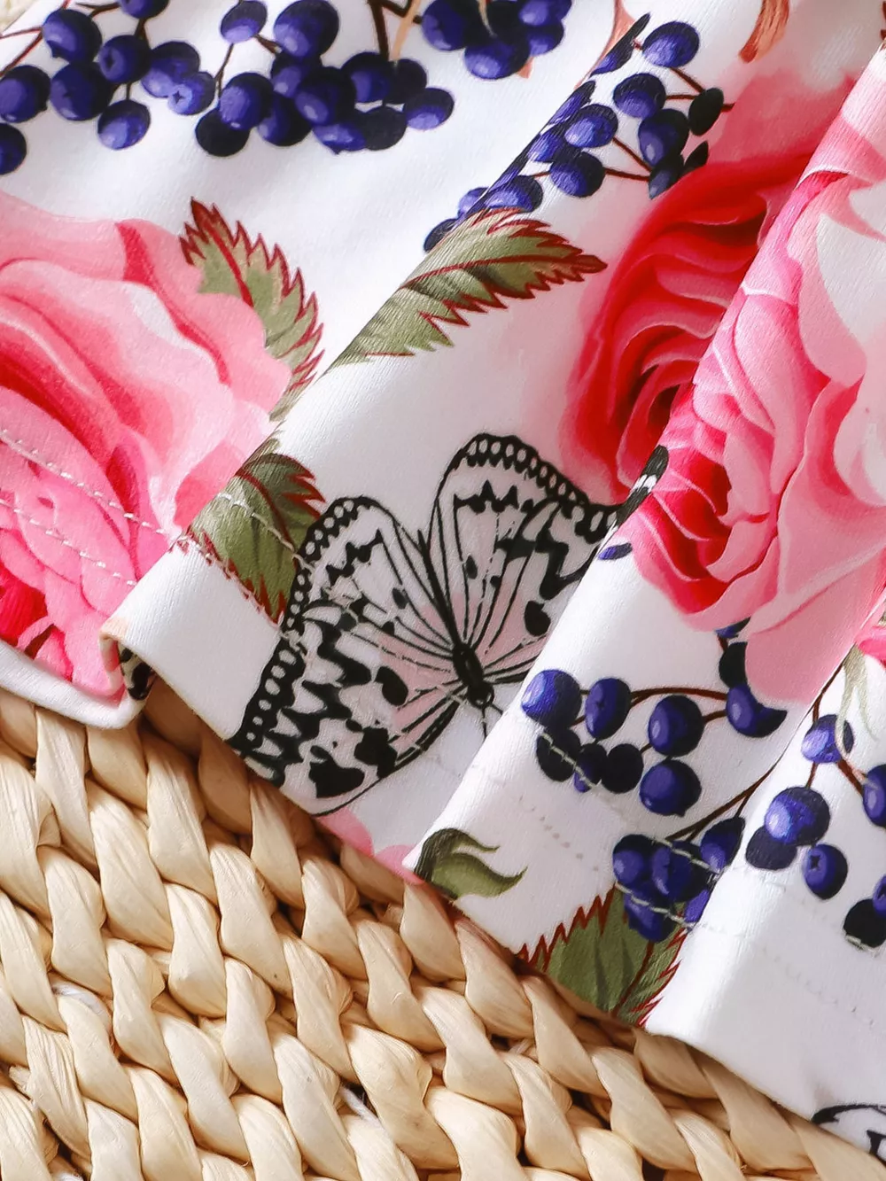 Children's Floral Ruffle Trim Top & Distressed Jeans Set