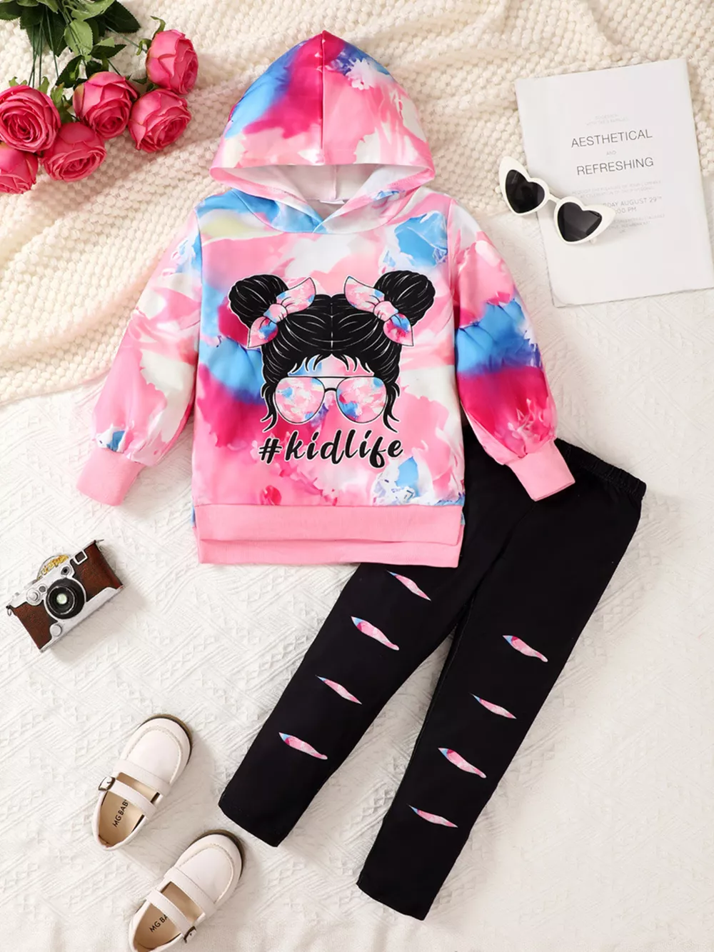 Children's Tie-Dye Graphic Hoodie & Pants Set