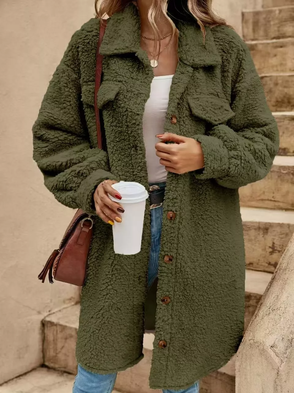 Full Size Fuzzy Fleece Longline Coat Plus Size