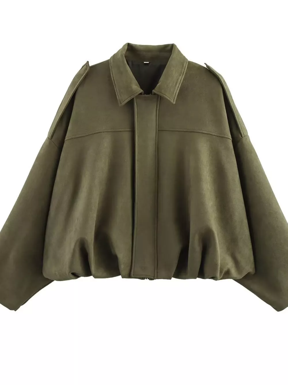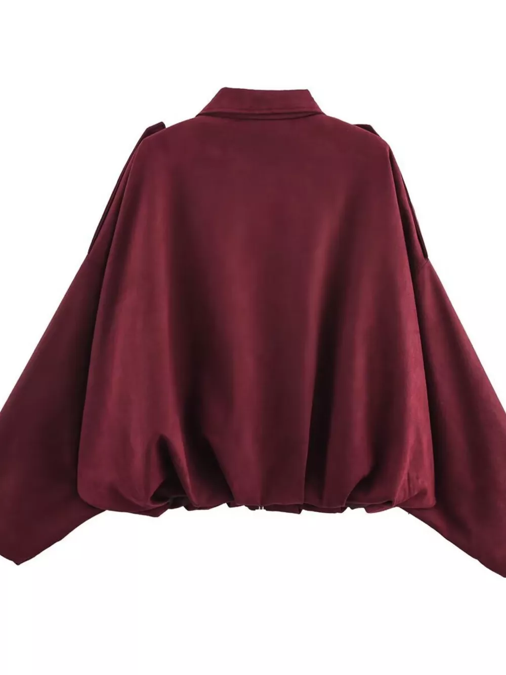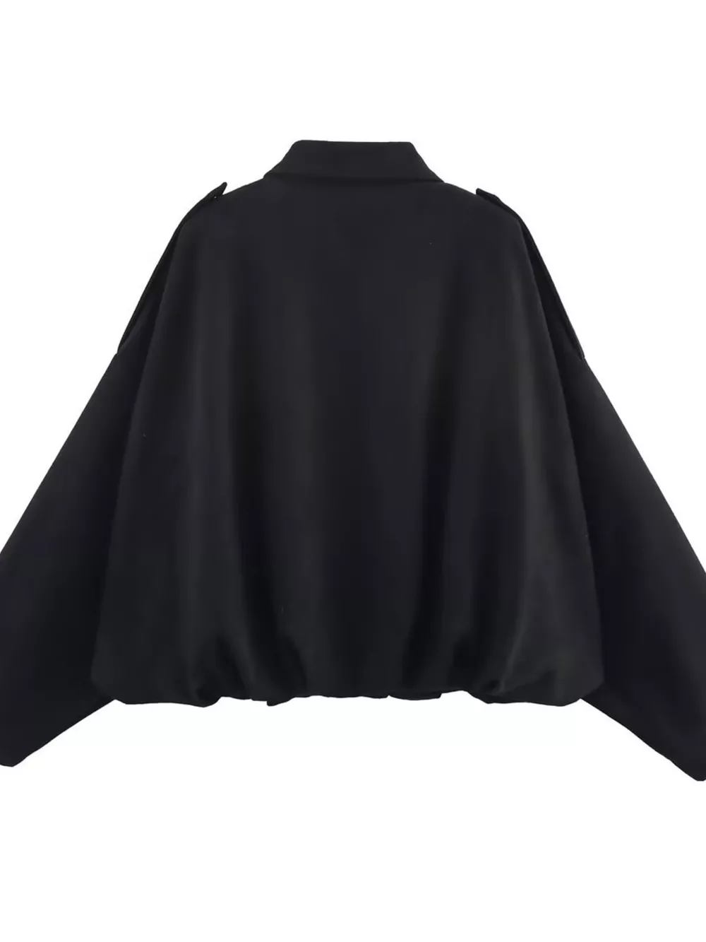 Oversized Zip Up Batwing Sleeve Casual Jacket