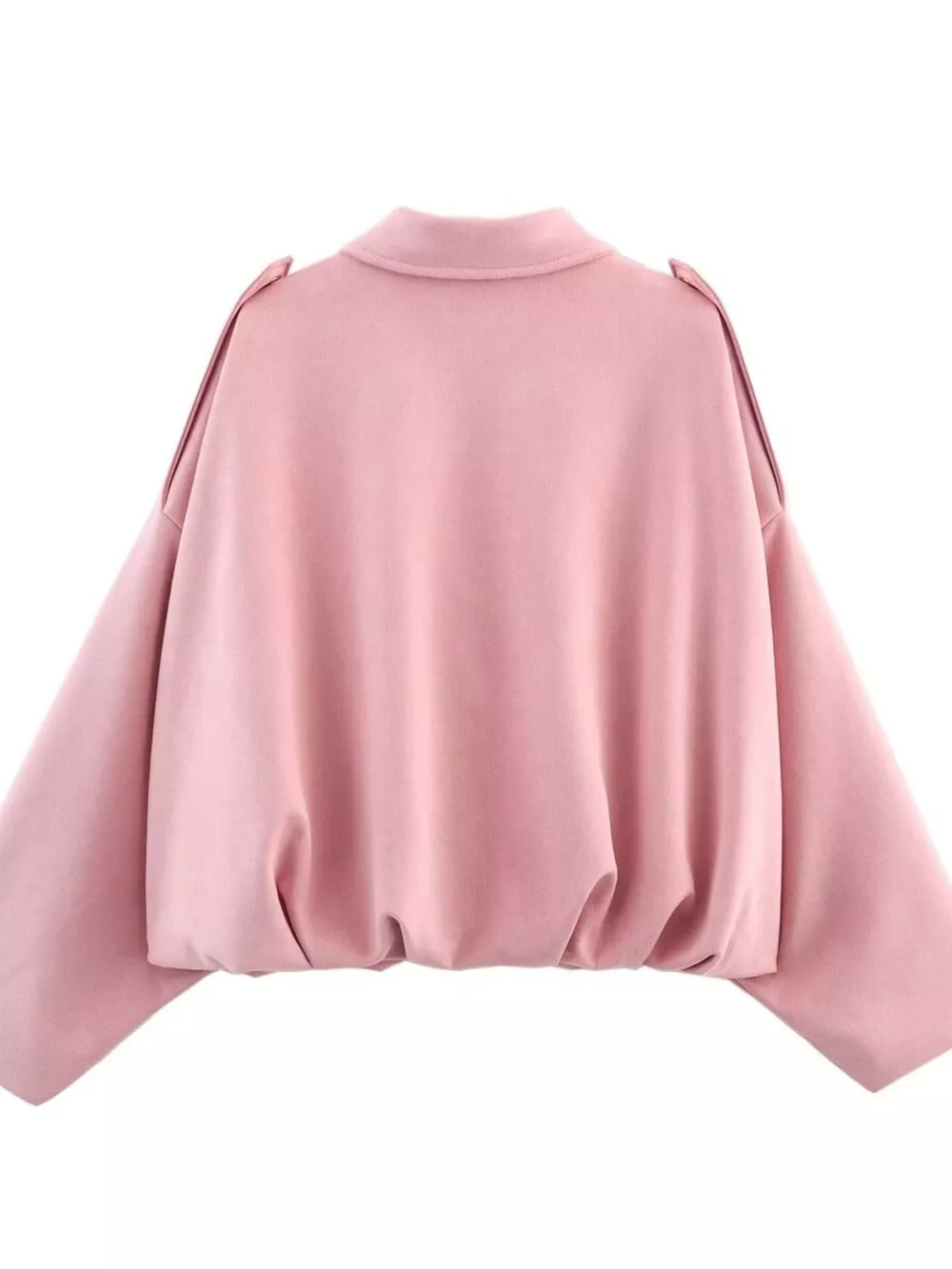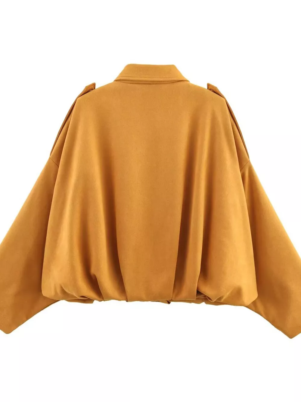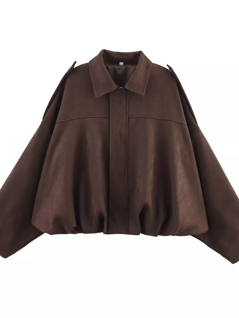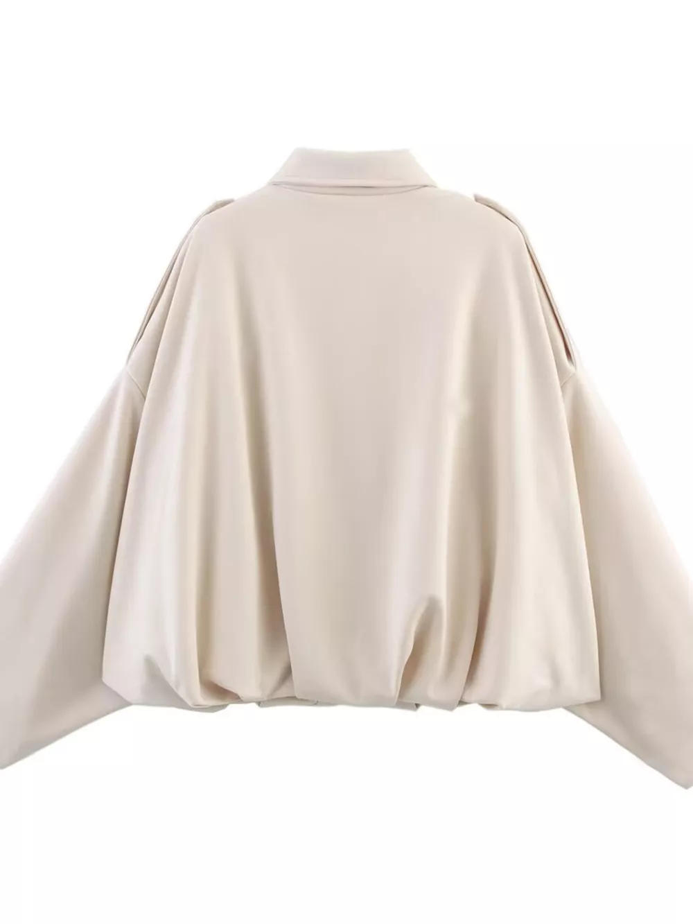 Oversized Zip Up Batwing Sleeve Casual Jacket