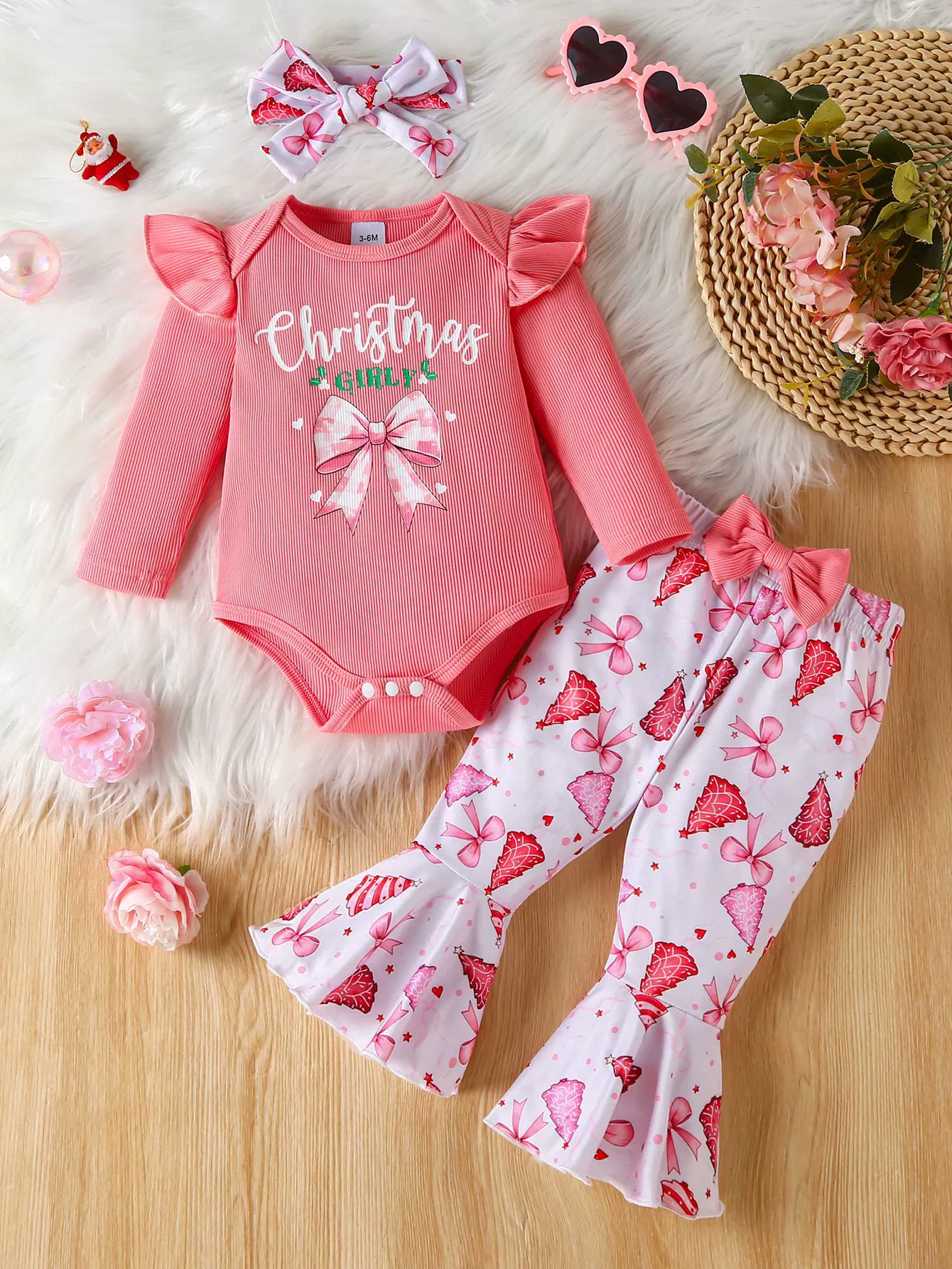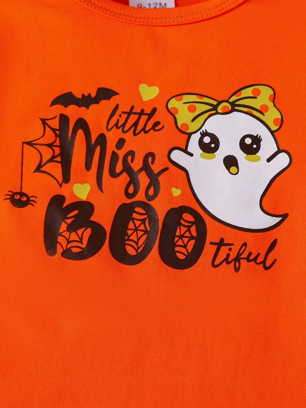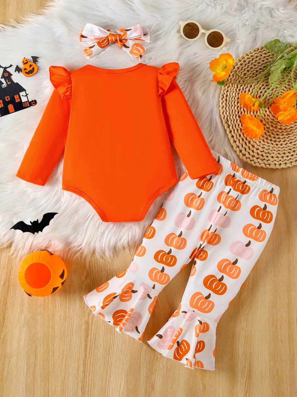 Children's Halloween Graphic Top and Pants 3-Piece Set with Headband