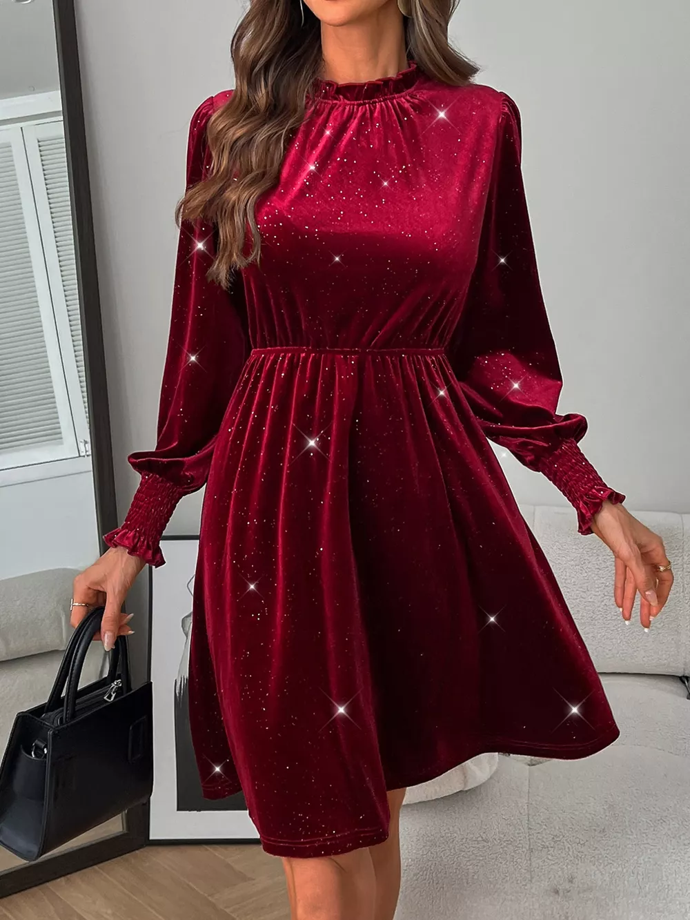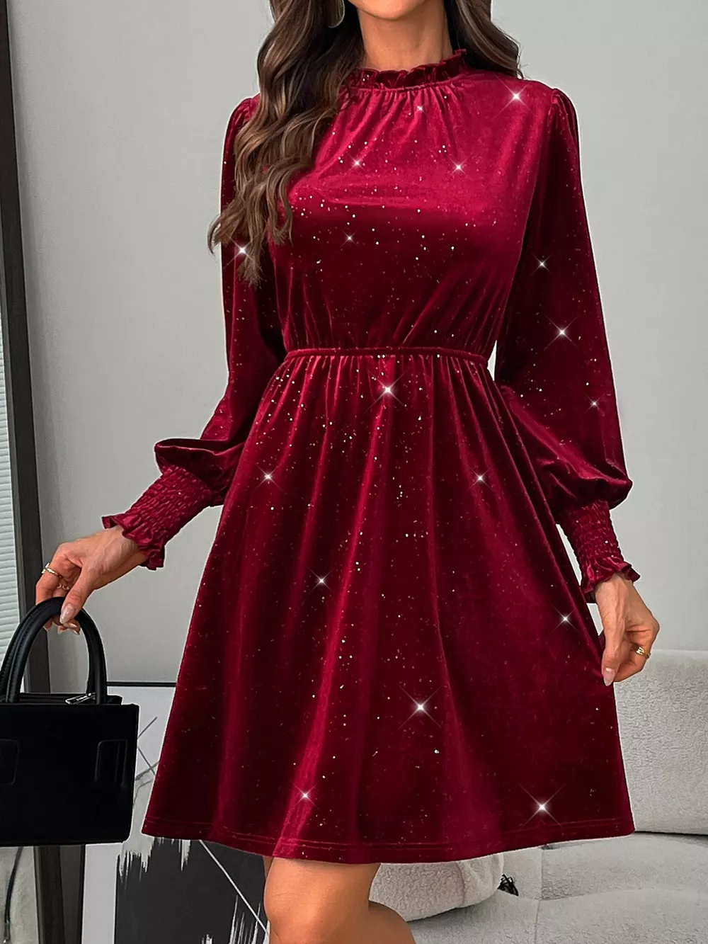Glitter Velvet A-Line Dress