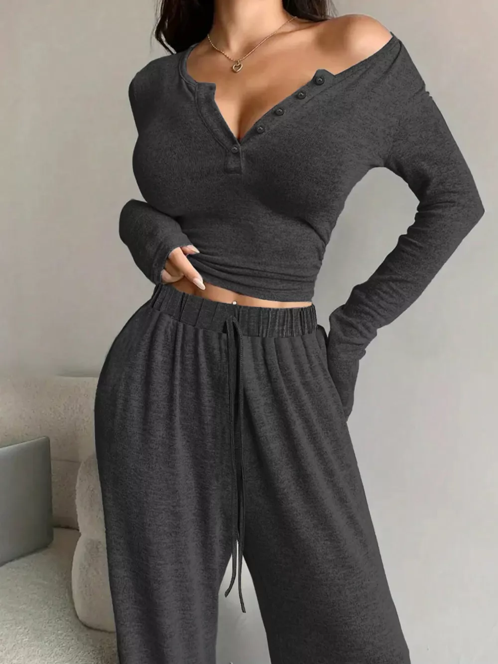 Casual Long Sleeve Top and Wide Leg Pants Set