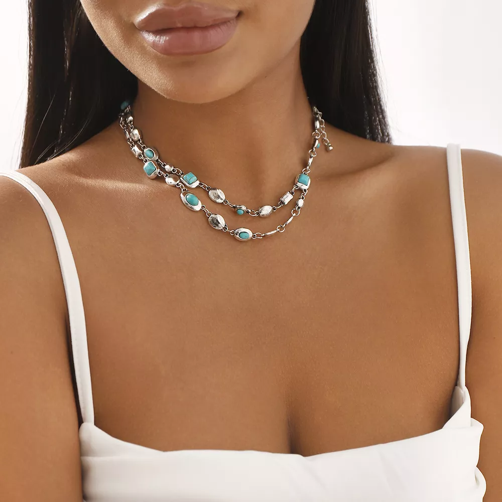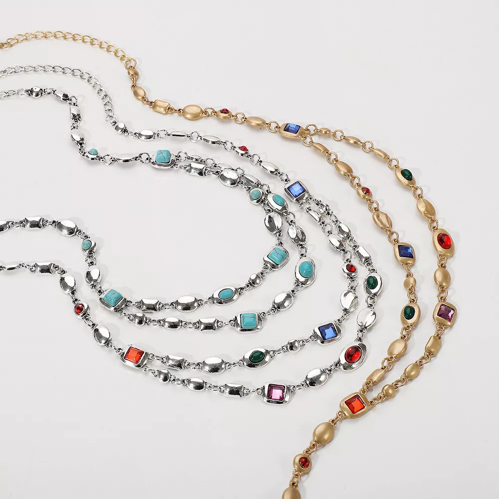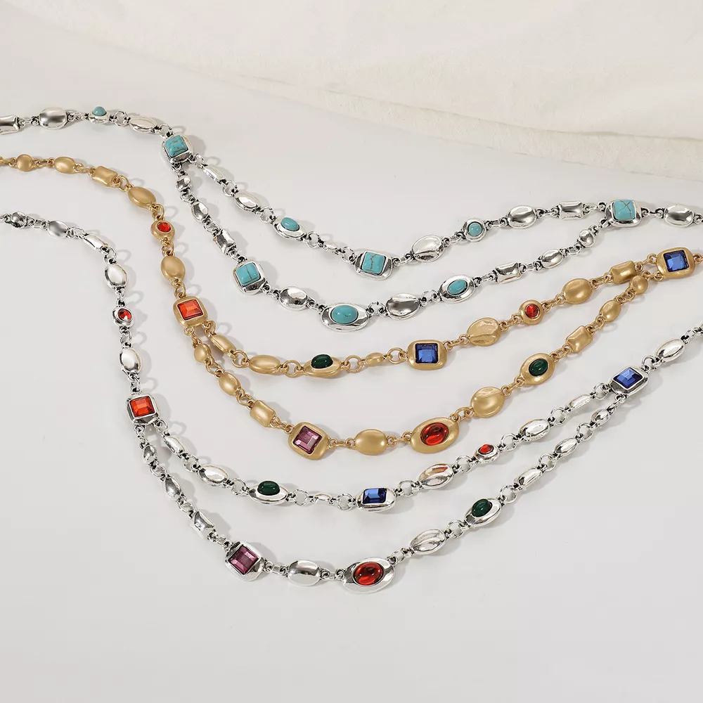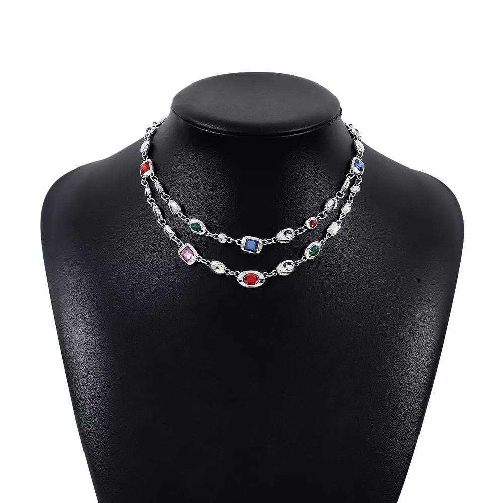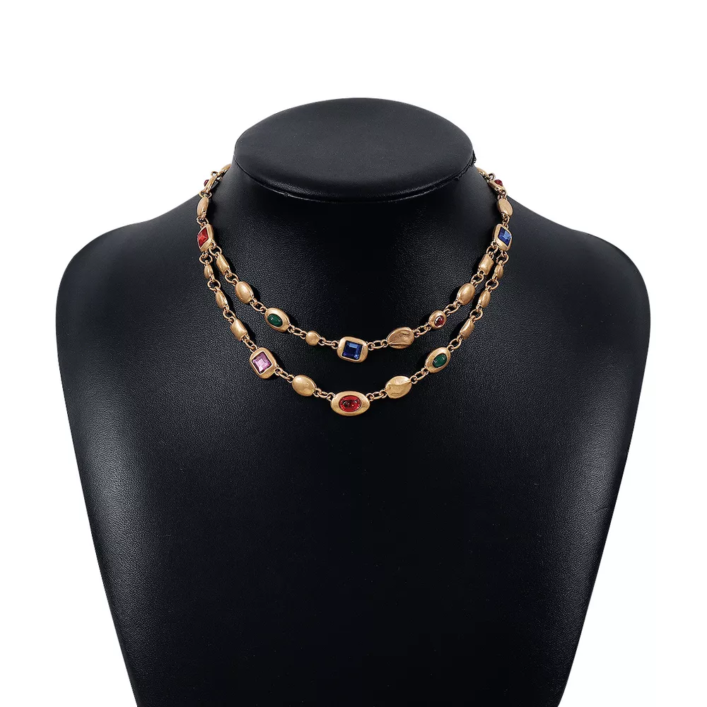 Vintage Multi-Gemstone Double Layered Necklace