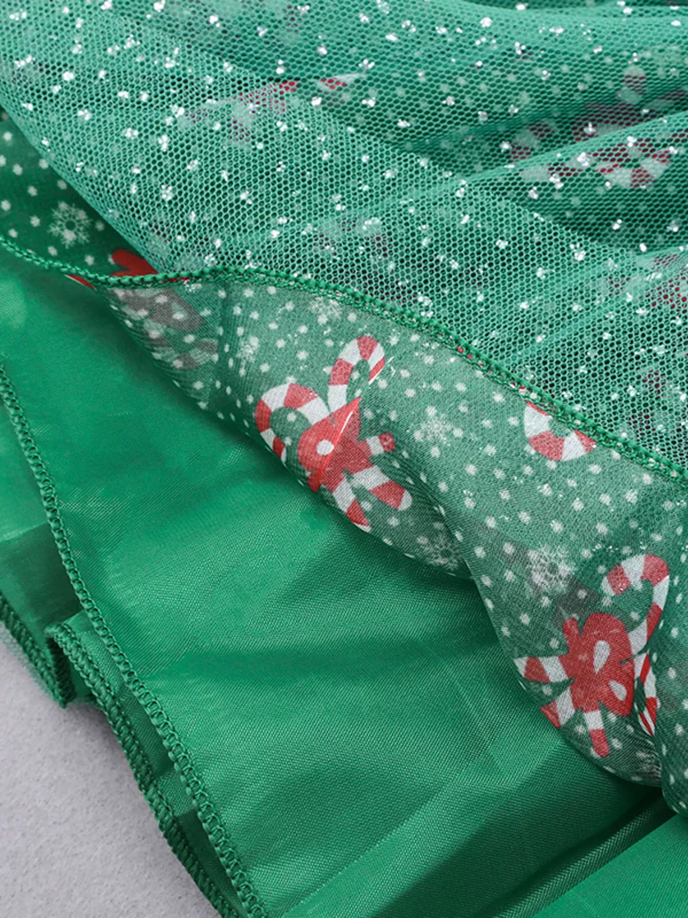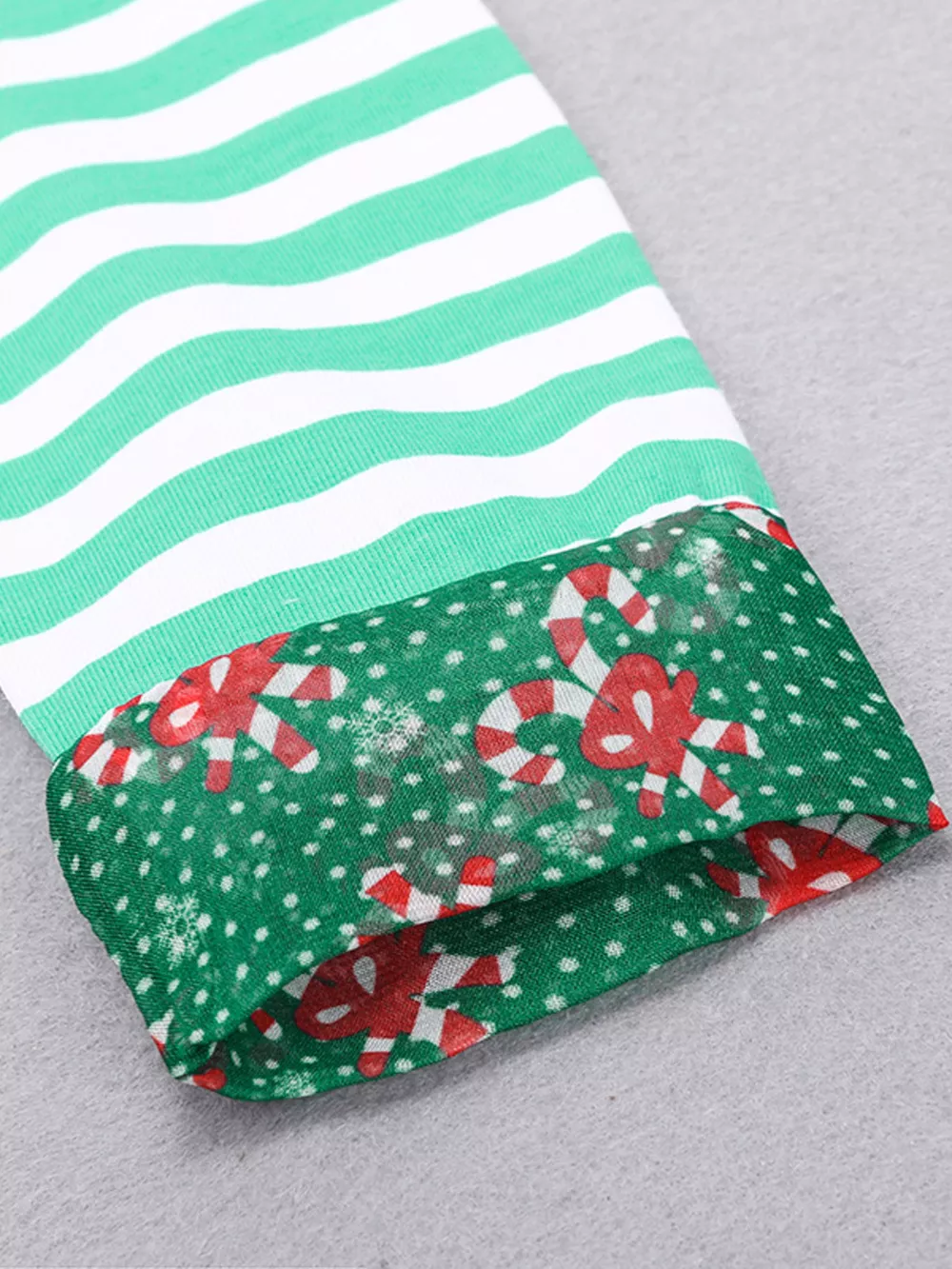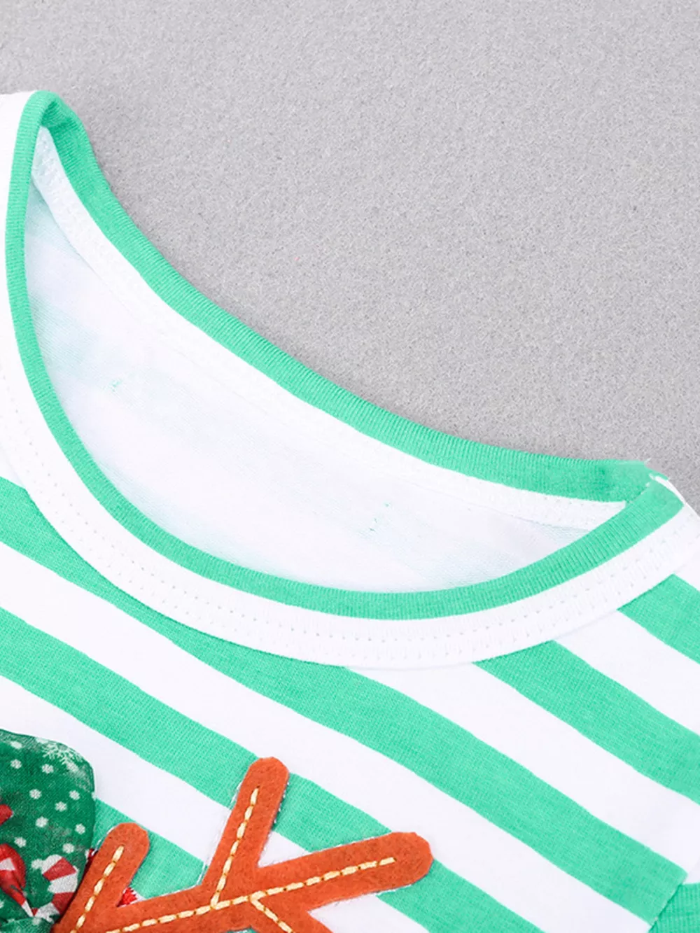 Children's Christmas Reindeer Applique Striped Long Sleeve Dress