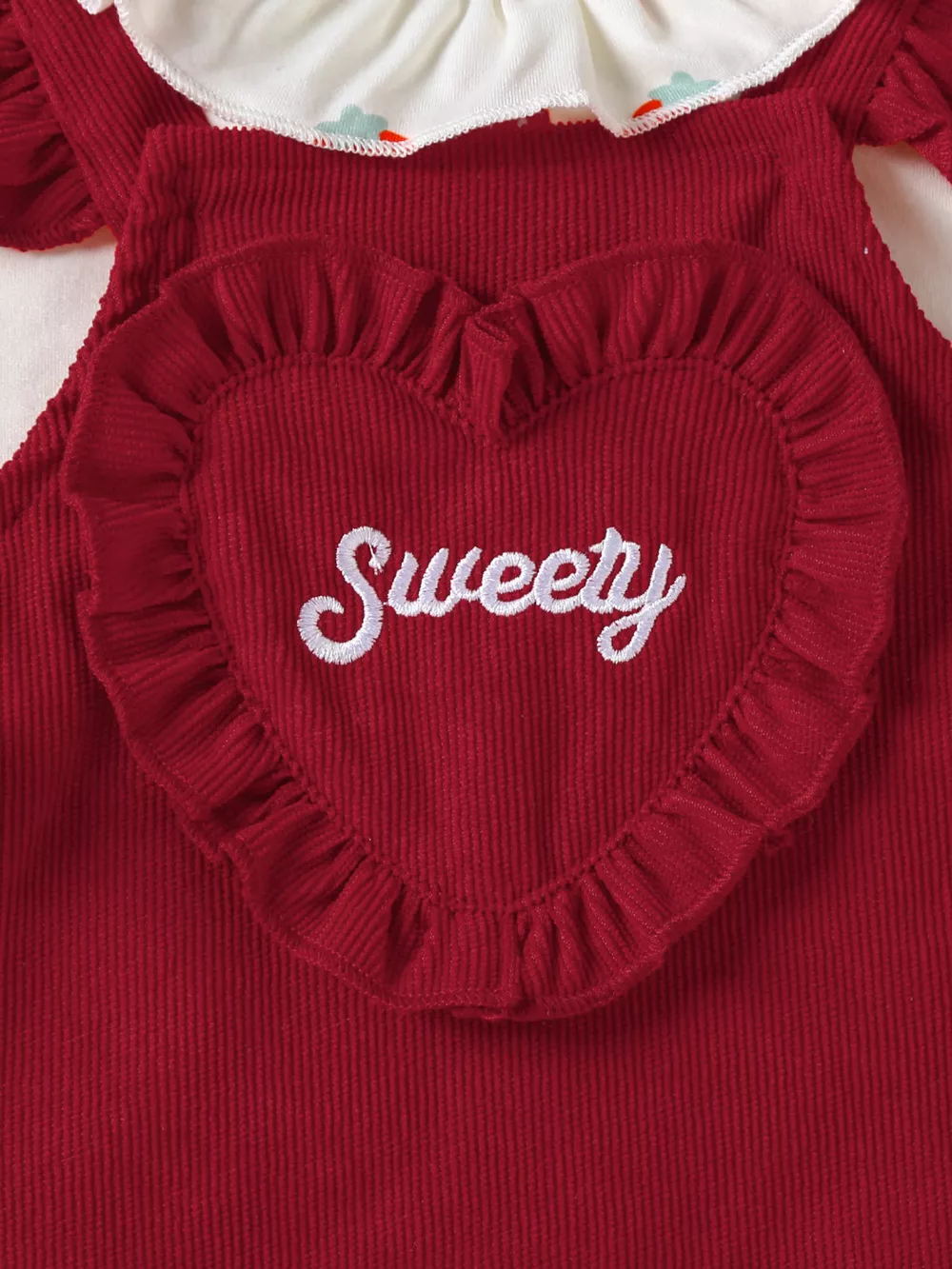 Children's Ruffled Bodysuit and Heart Decor Dress Set with Headband