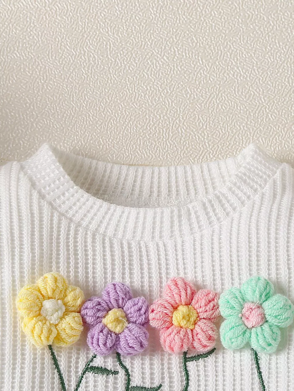 Children's Floral Applique Ribbed Top & Flare Leg Pants Set