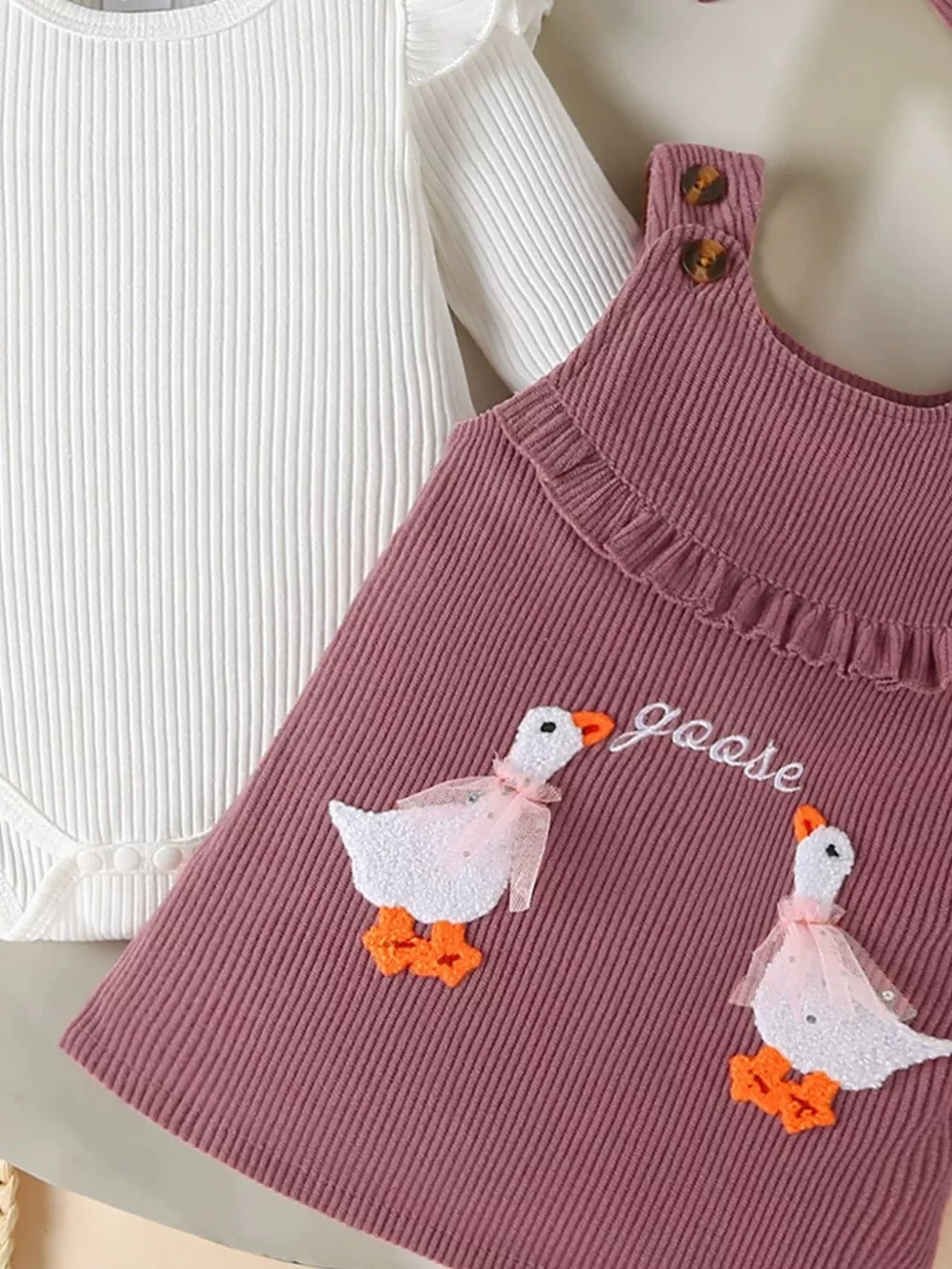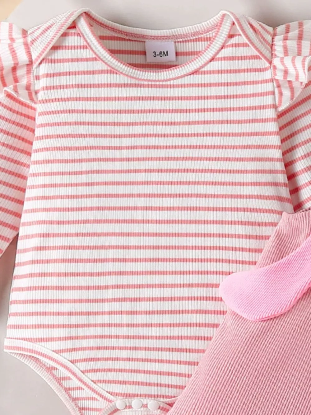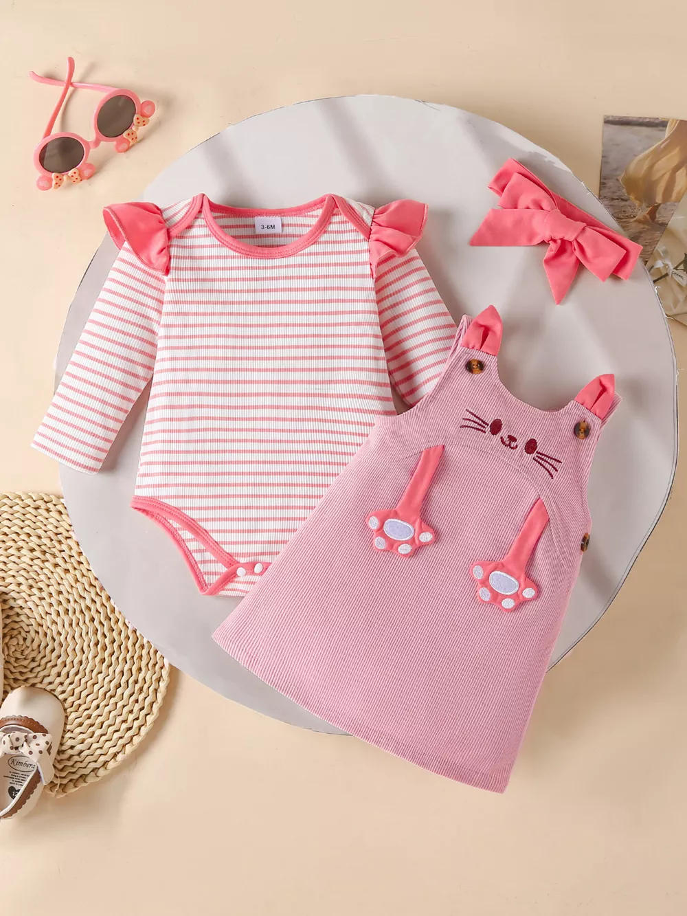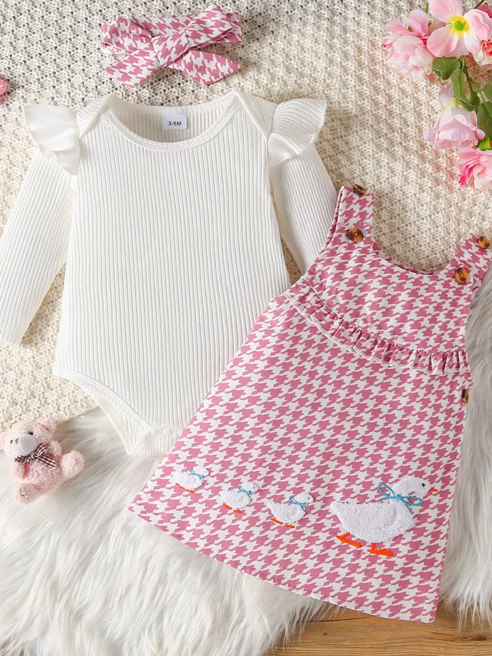 Children's Ruffled Trim Bodysuit and Dress Set with Headband