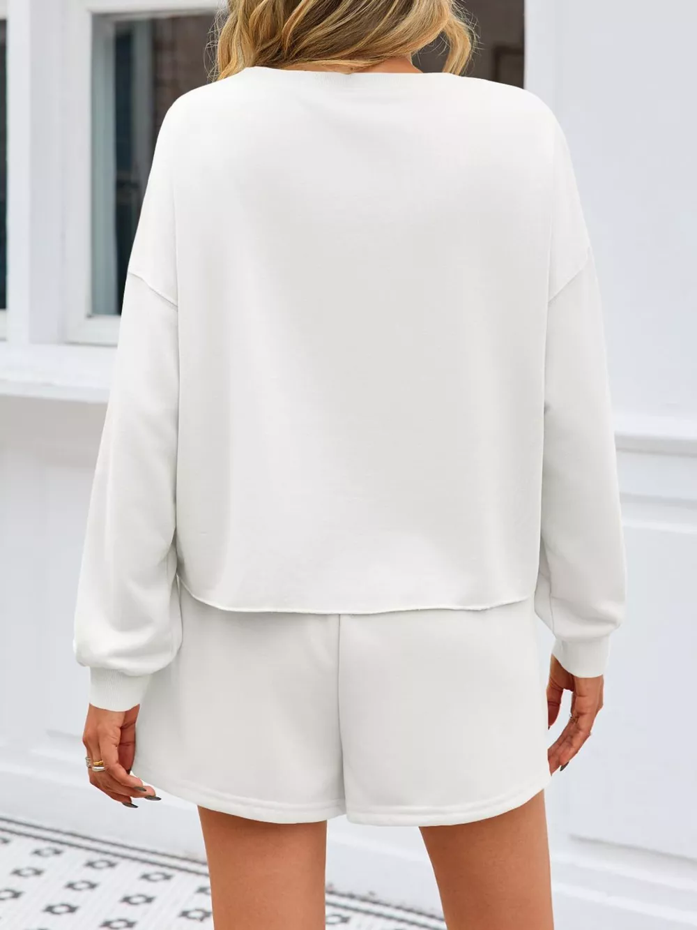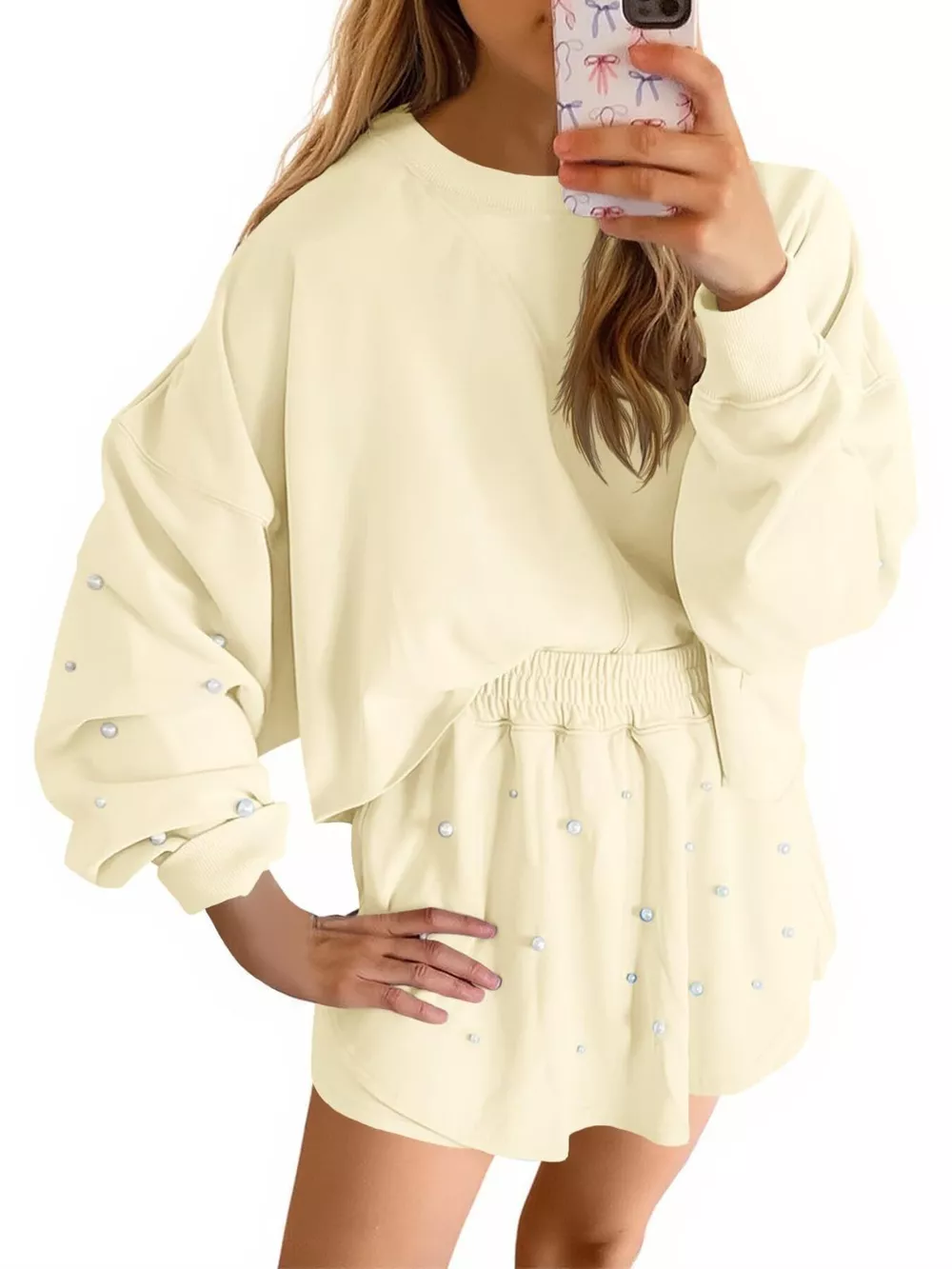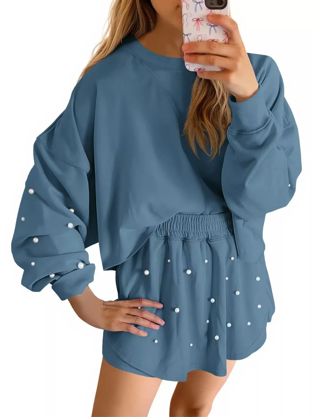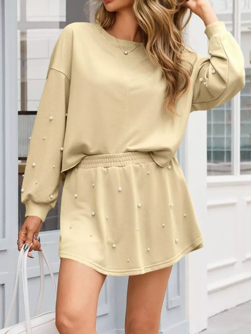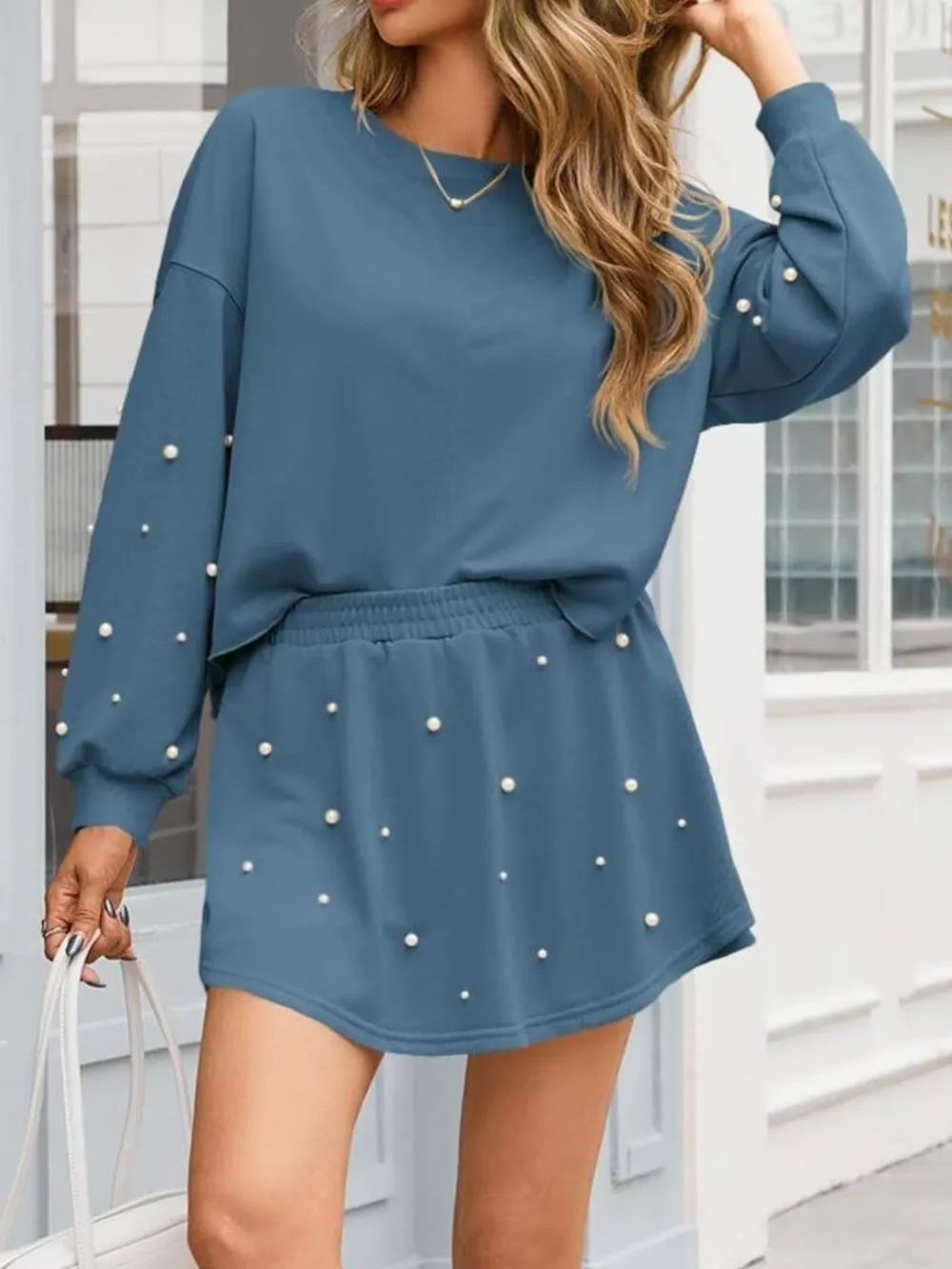 Pearl Embellished Round Neck Top and Skort Set