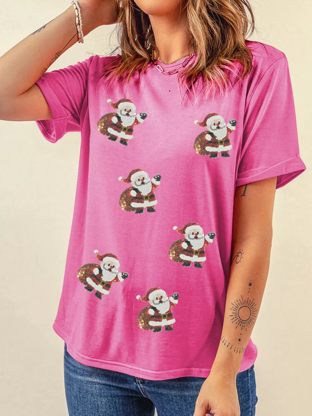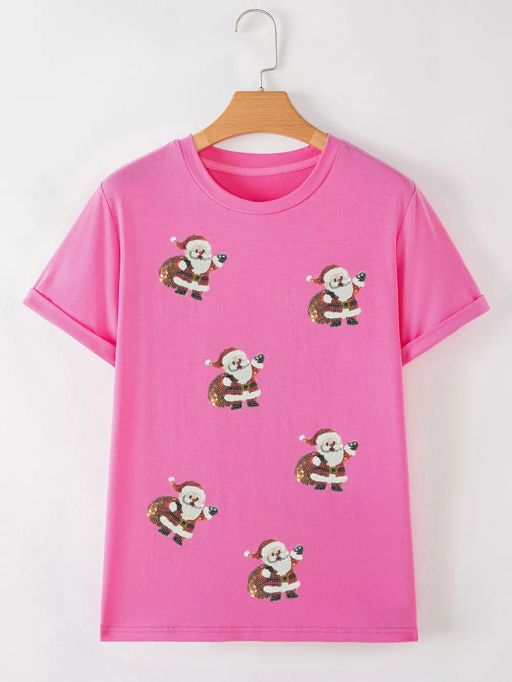 Santa Claus Deliver Gifts Sequin Short Sleeve Tee