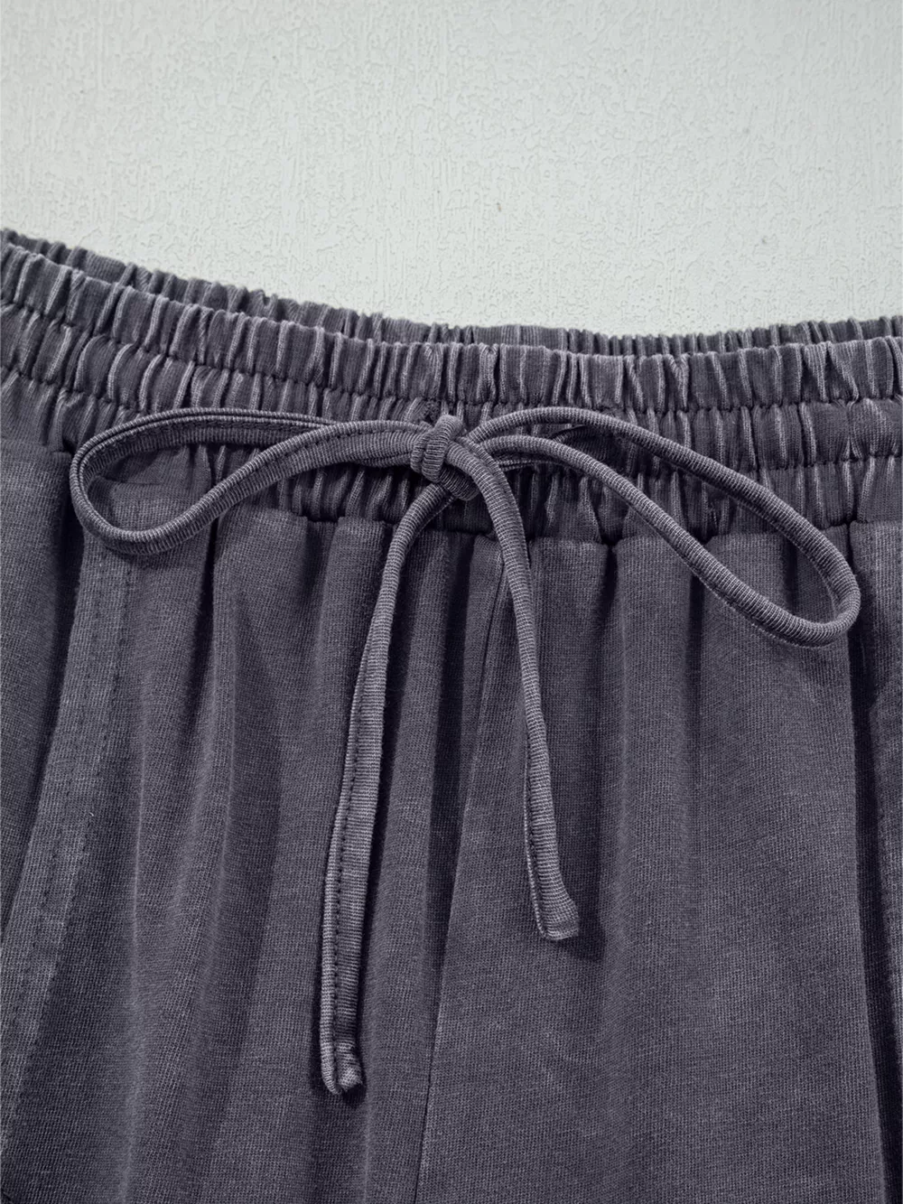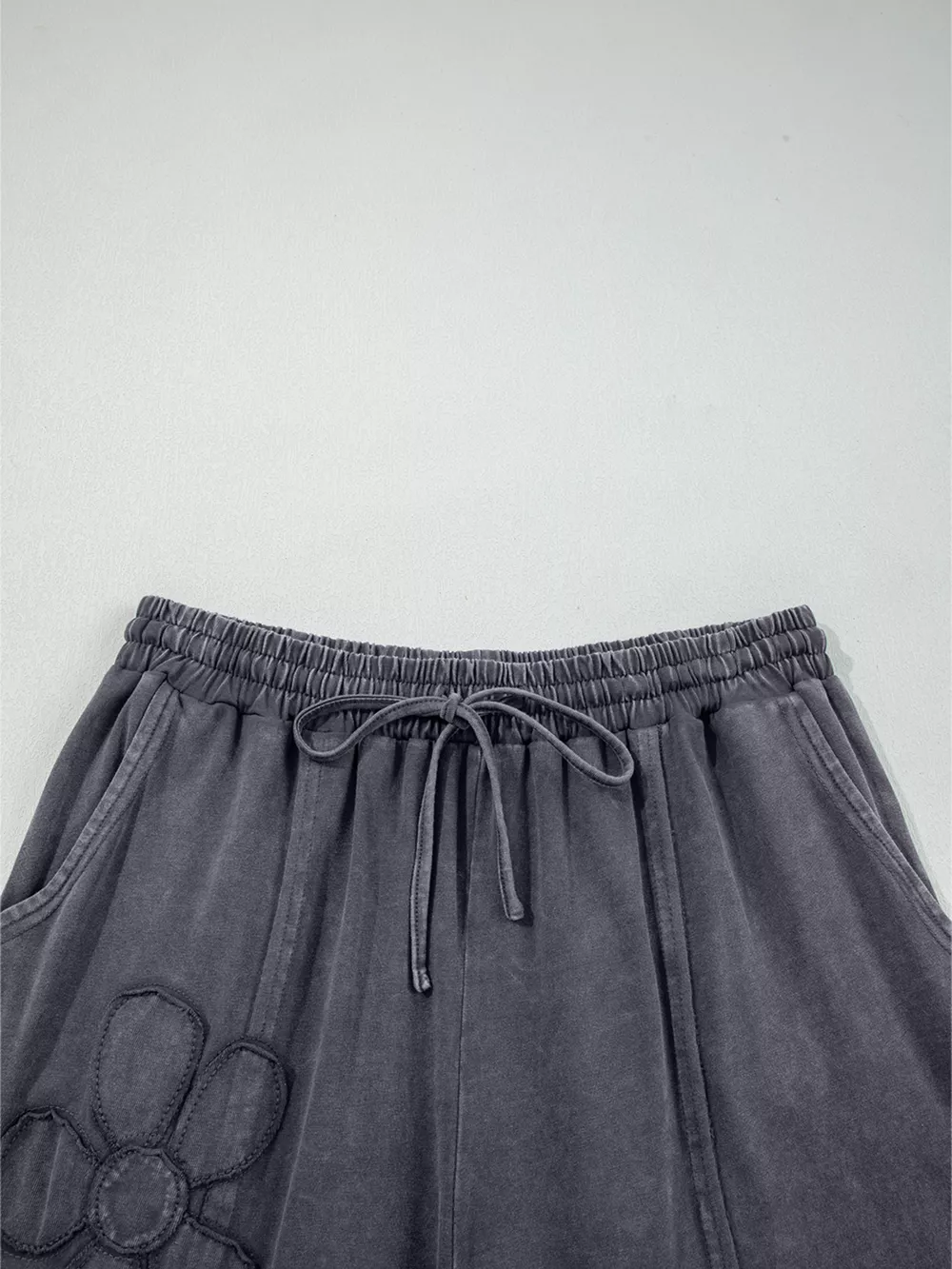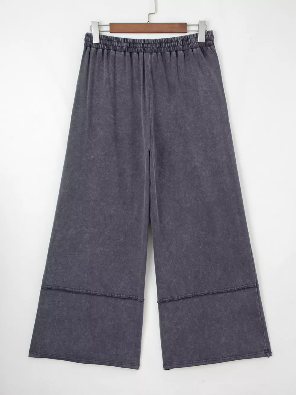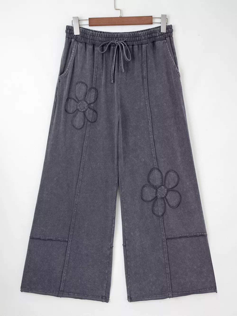 Flower Patch Mineral Washed Terry Knit Cropped Wide Leg Pants