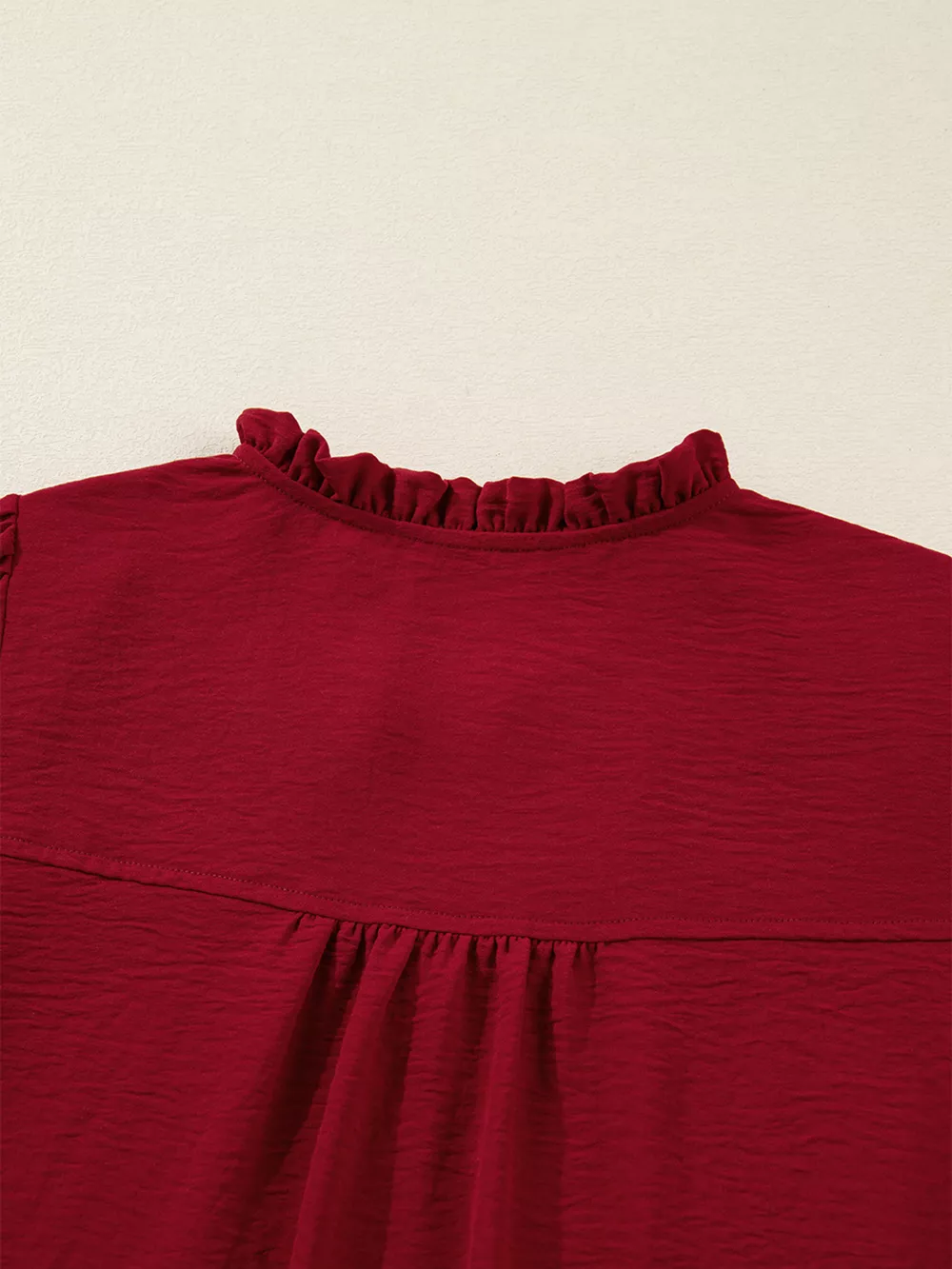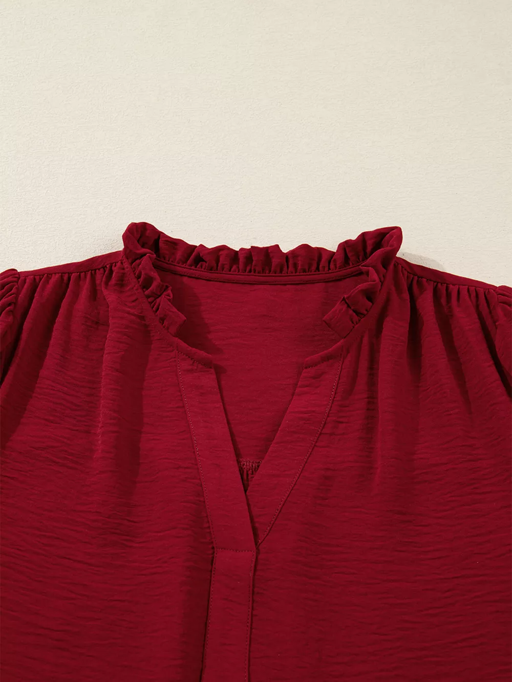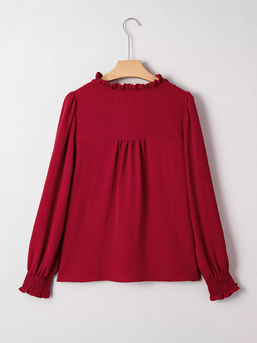 Notched Neck Shirred Cuff Long Sleeve Blouse