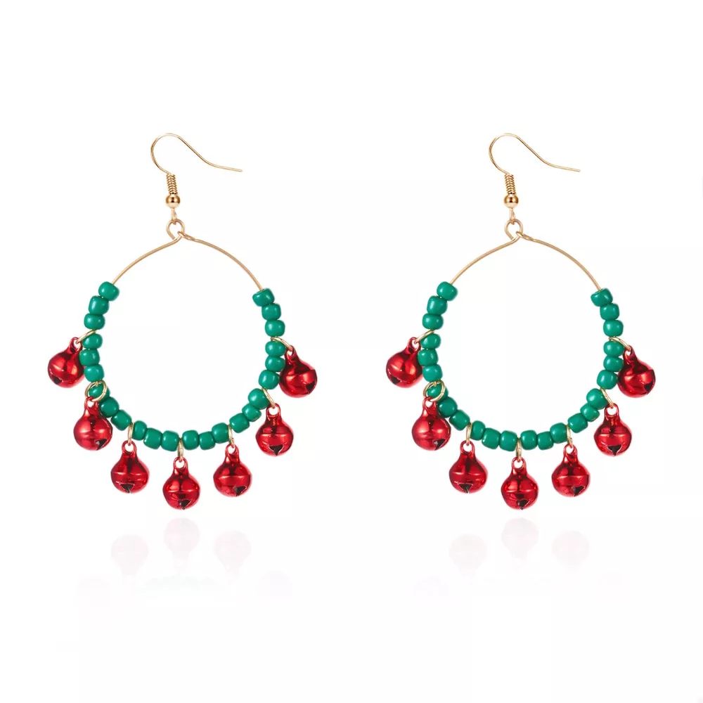 Christmas Beaded Hoop Earrings with Jingle Bells