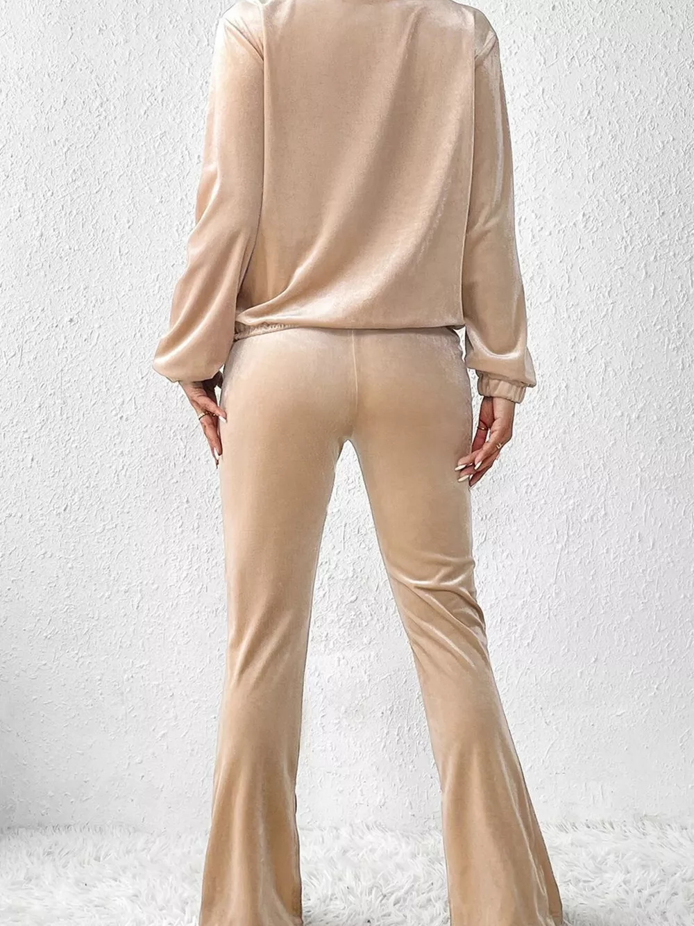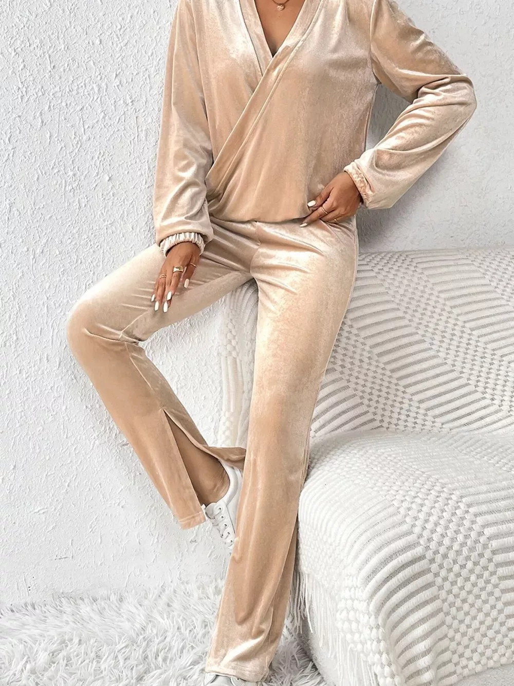 Plus Size Surplice Long Sleeve Top and Pants Set
