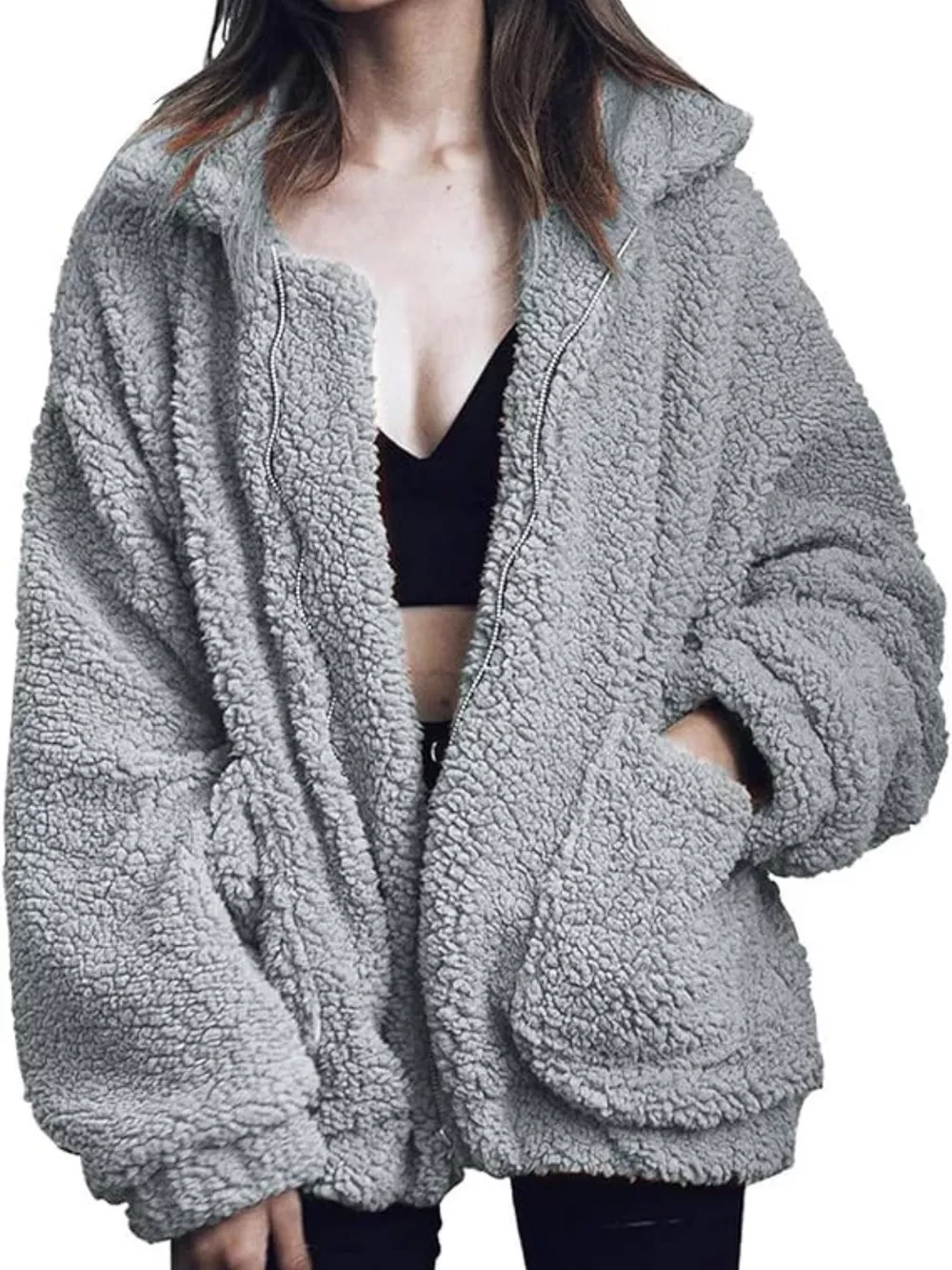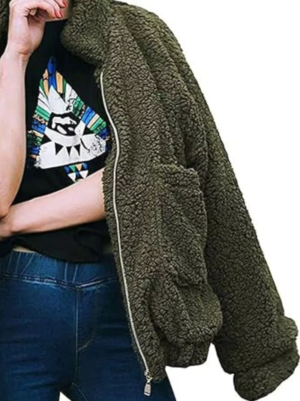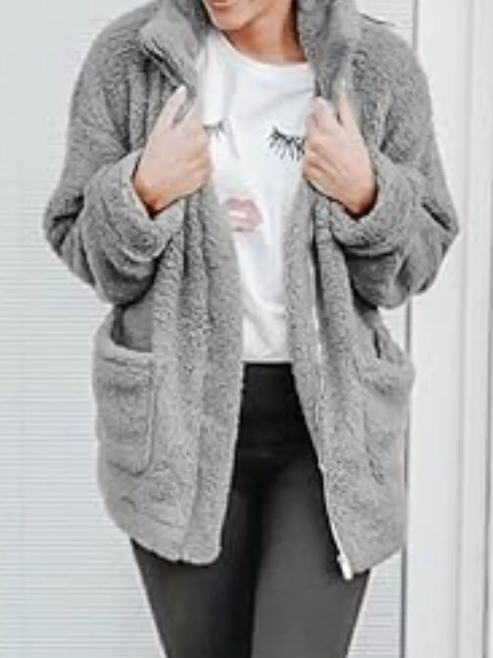 Full Size Cozy Fleece Zip Up Jacket Plus Size