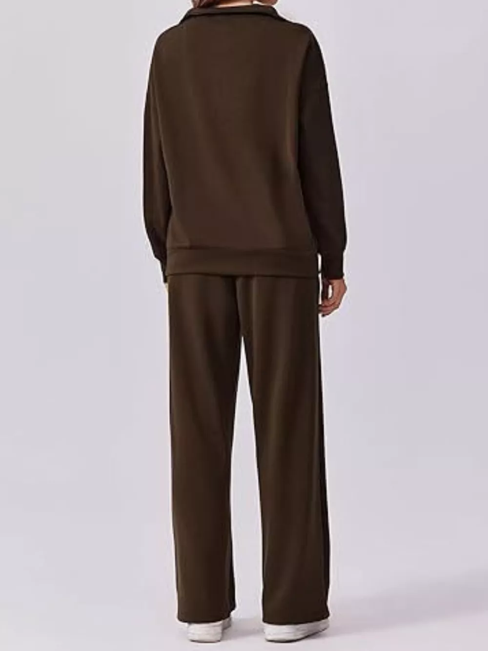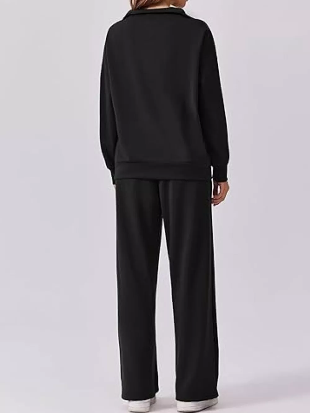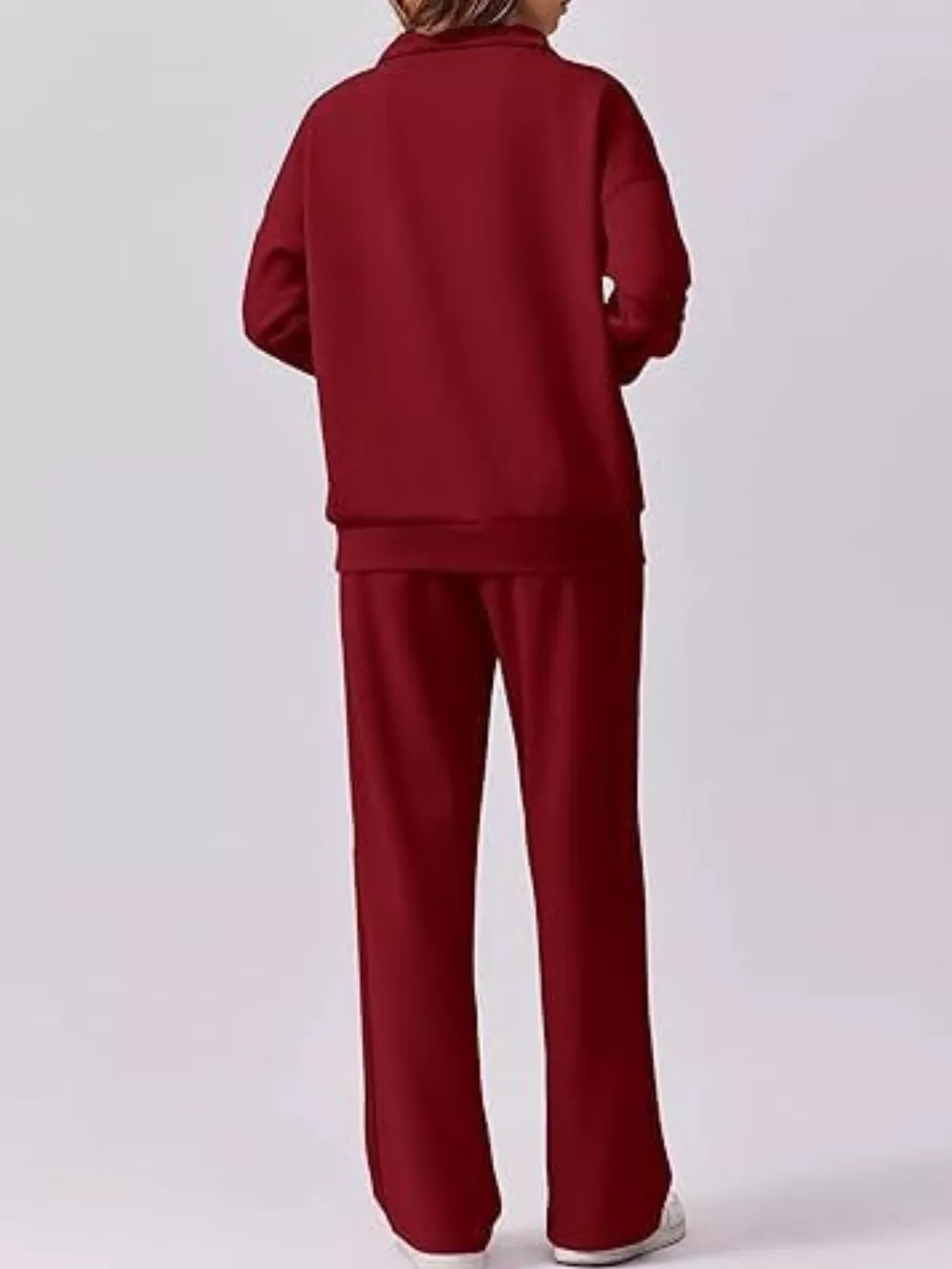 Zip Collar Dropped Shoulder Top and Pants Set