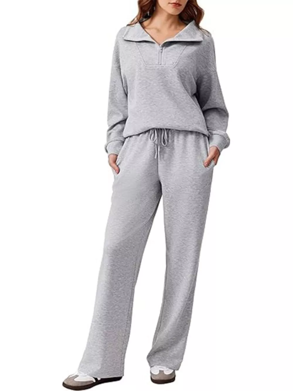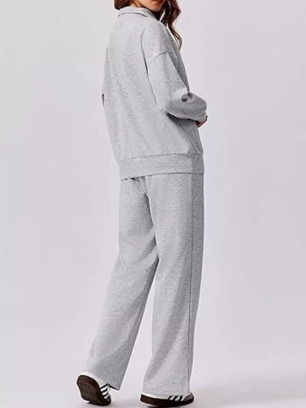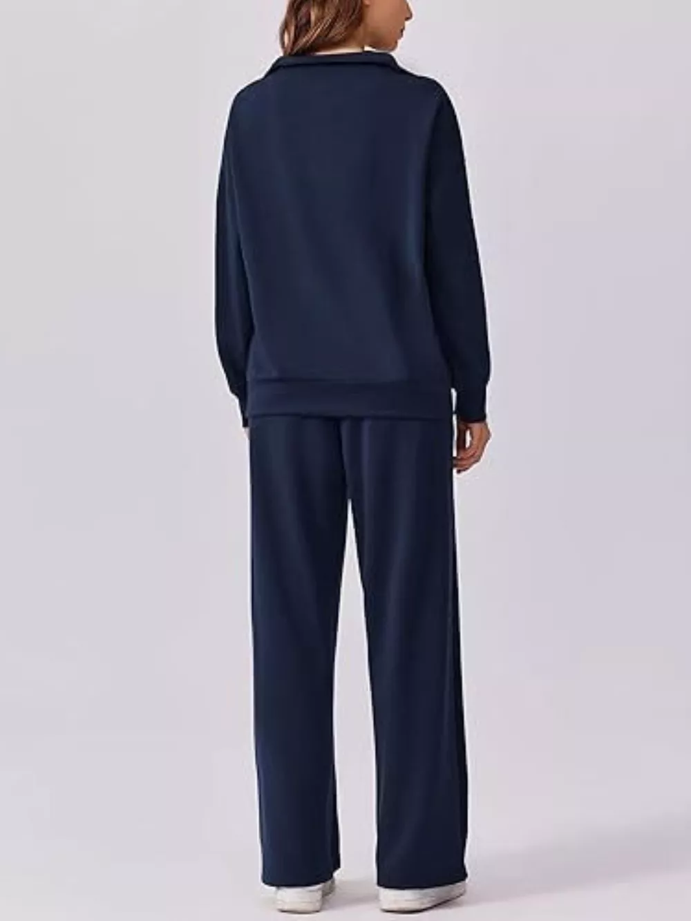Zip Collar Dropped Shoulder Top and Pants Set