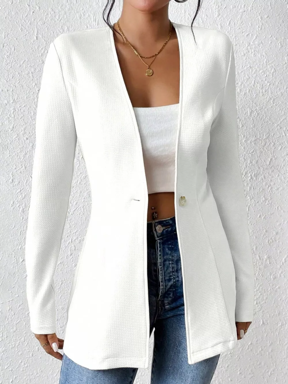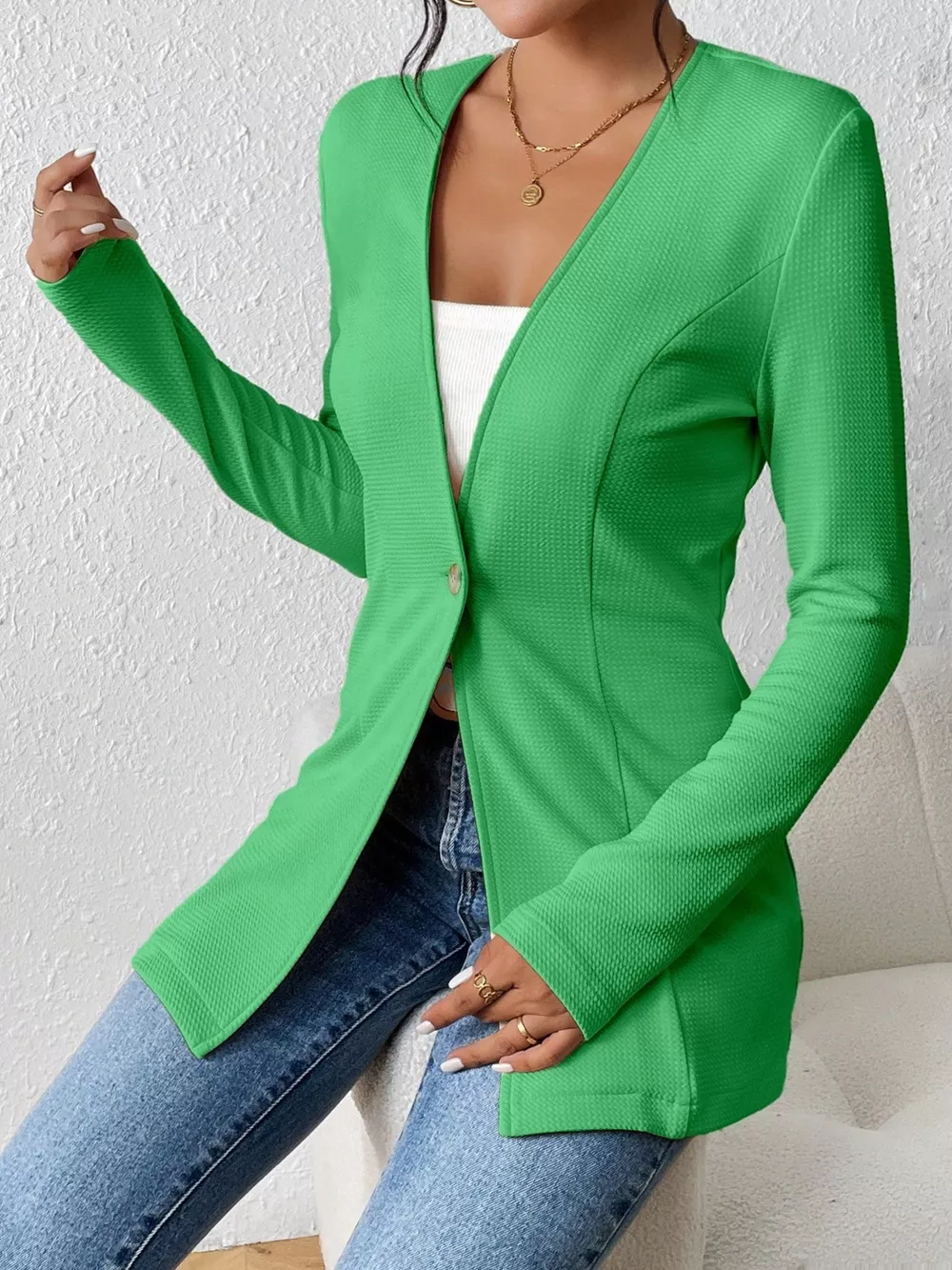 Single-Button Long Sleeve Blazer