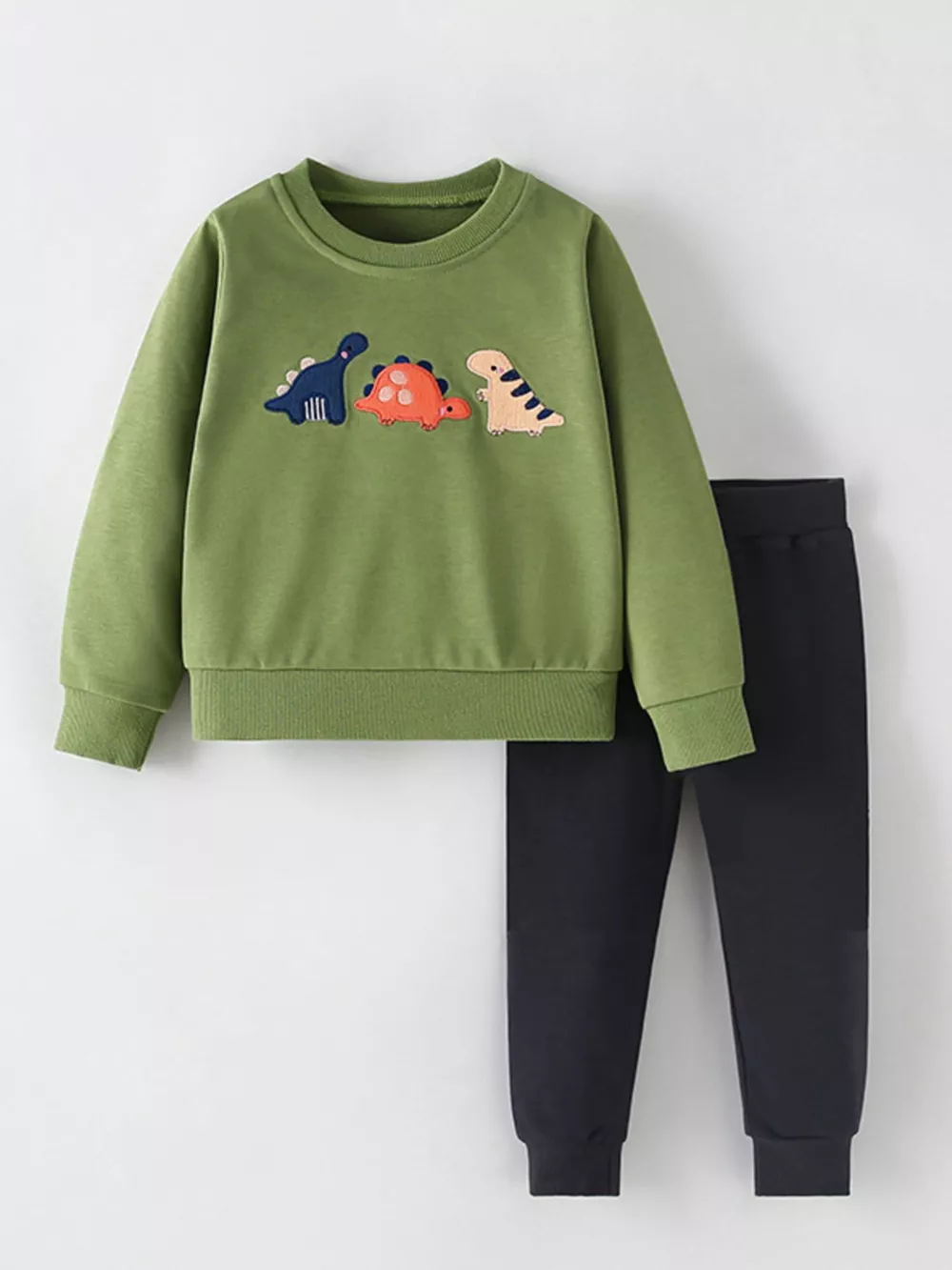 Children's Dinosaur Embroidered Sweatshirt and Pants Set