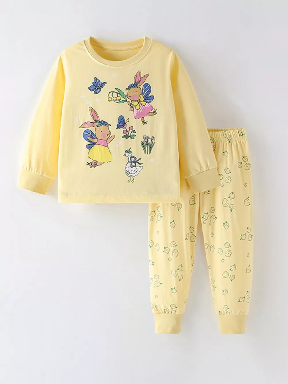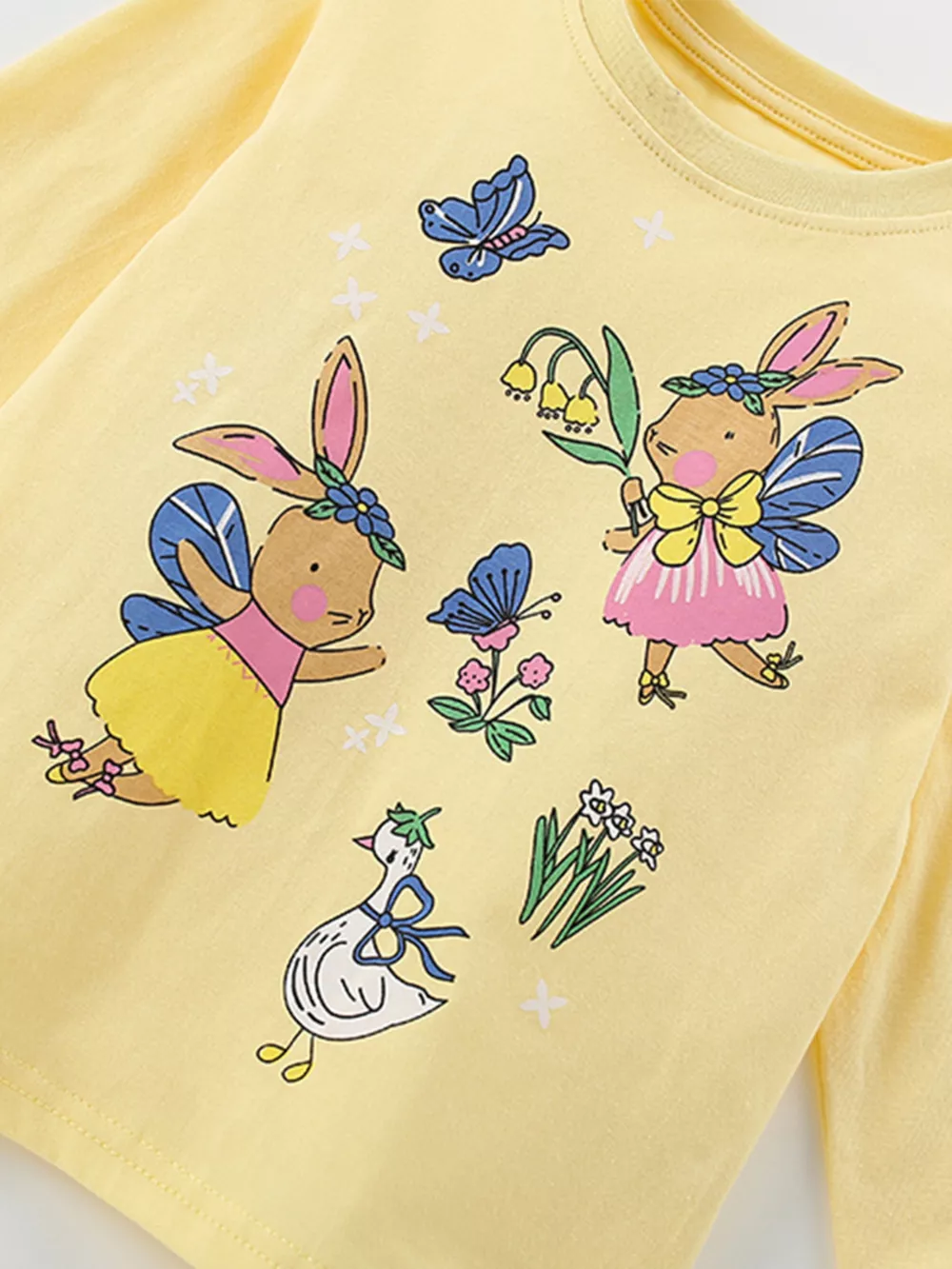 Children's Cute Cartoon Bunny Long Sleeve Top and Pants Set