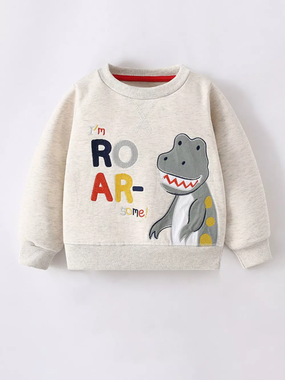 Children's Dinosaur Embroidered Crew Neck Sweatshirt