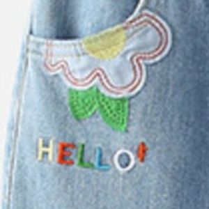 Children's Embroidered Cartoon Pattern Elastic Waist Jeans