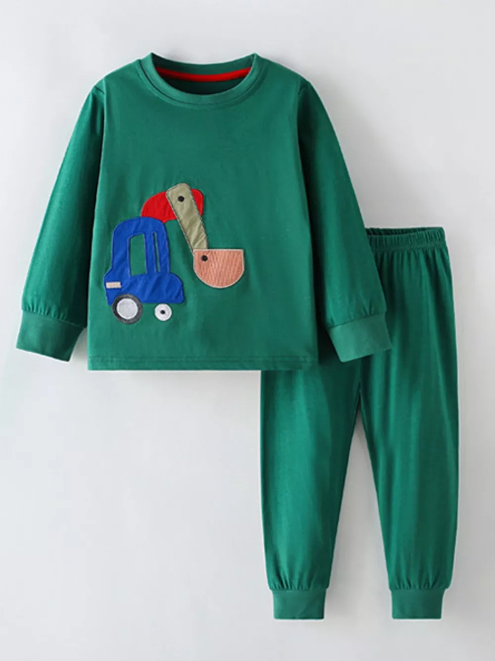 Children's Excavator Applique Long Sleeve Top and Pants Set