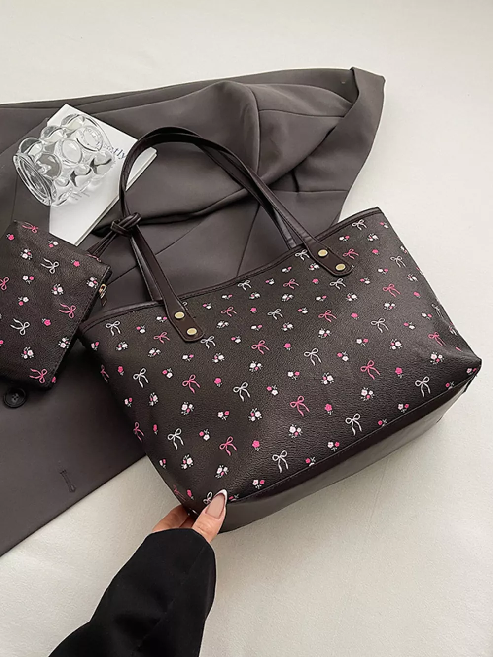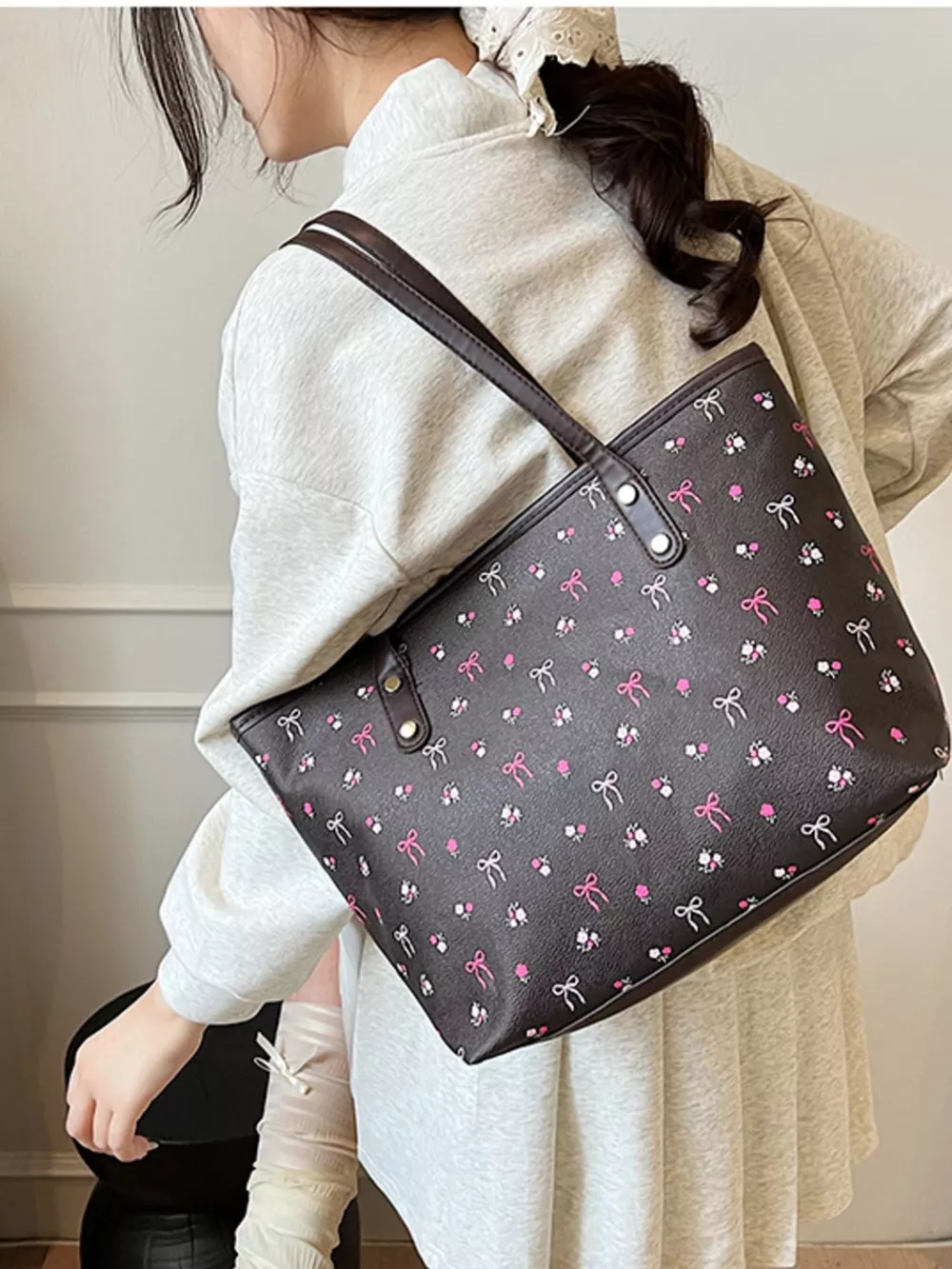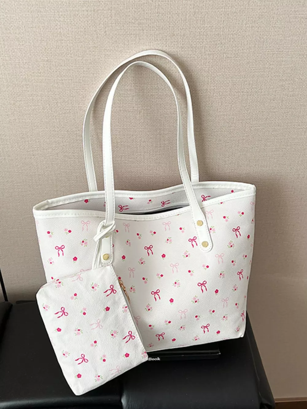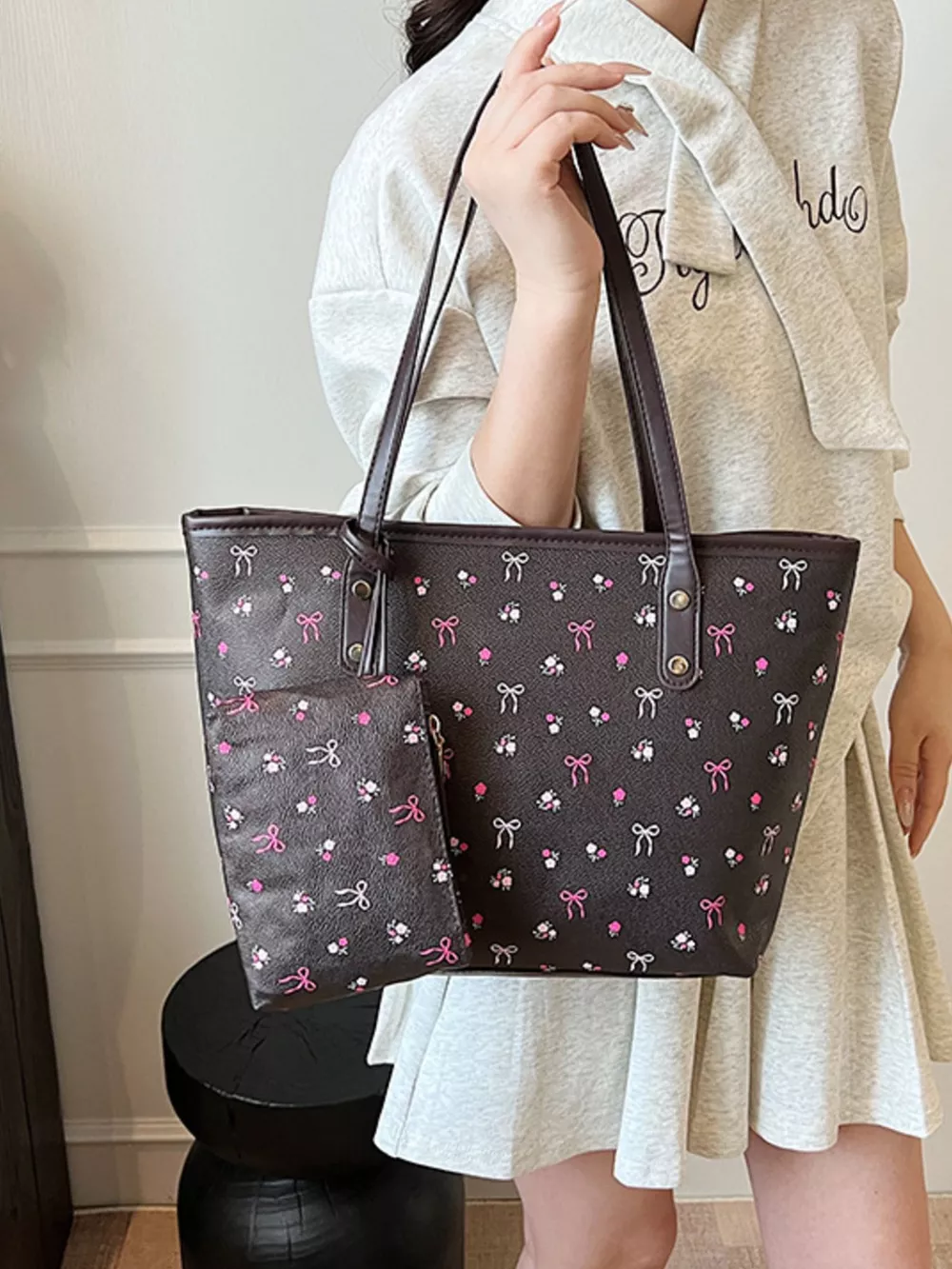 Printed Tote Shoulder Bag with Pouch