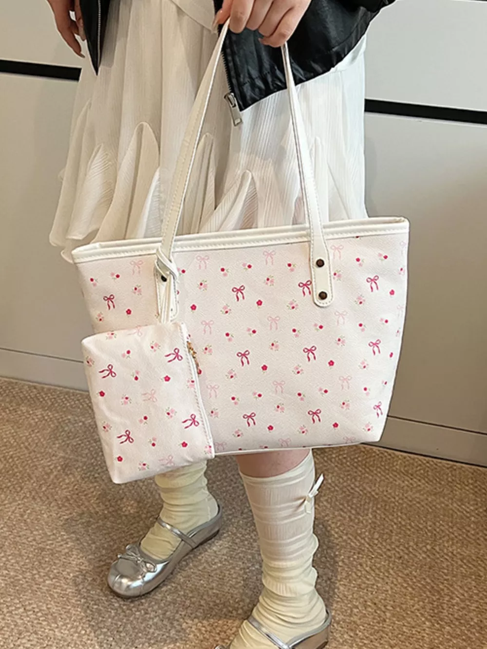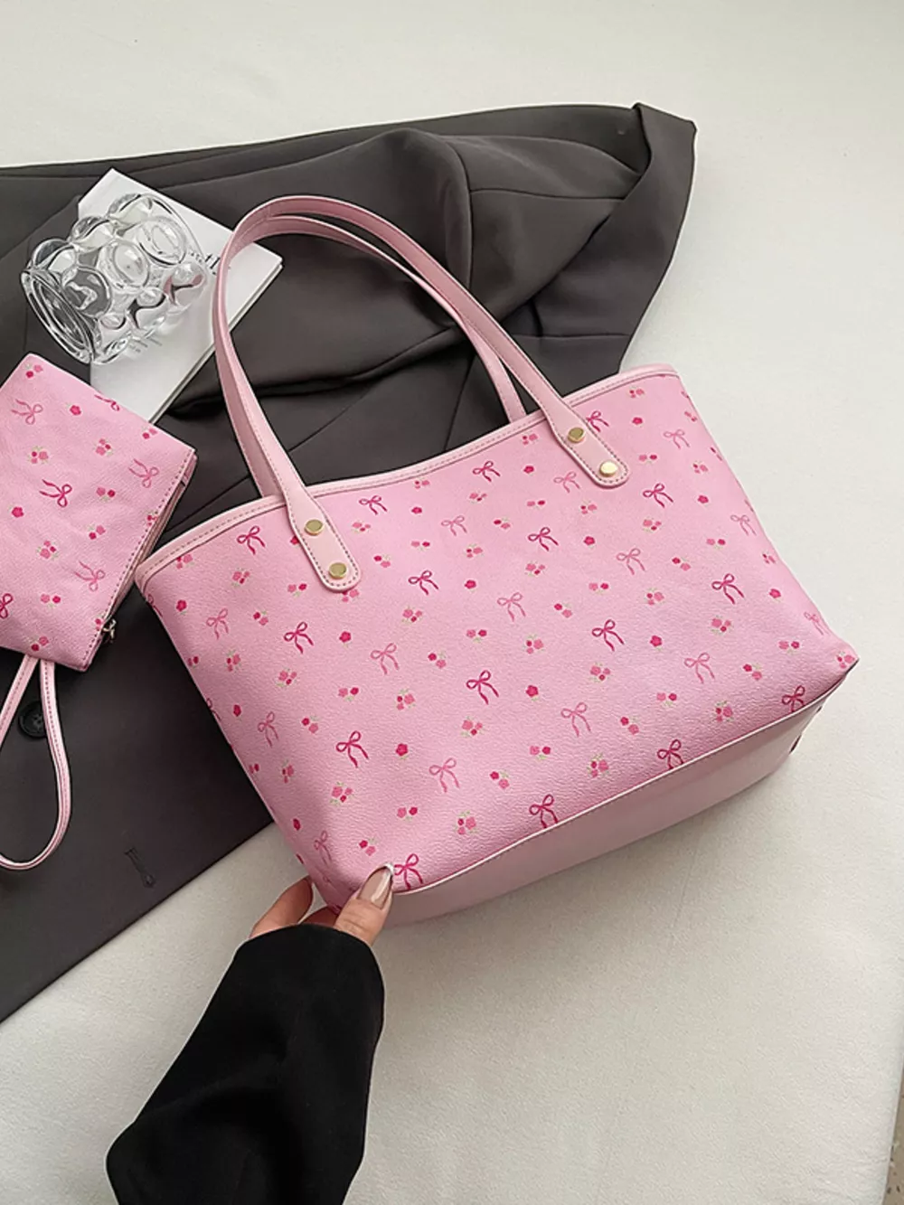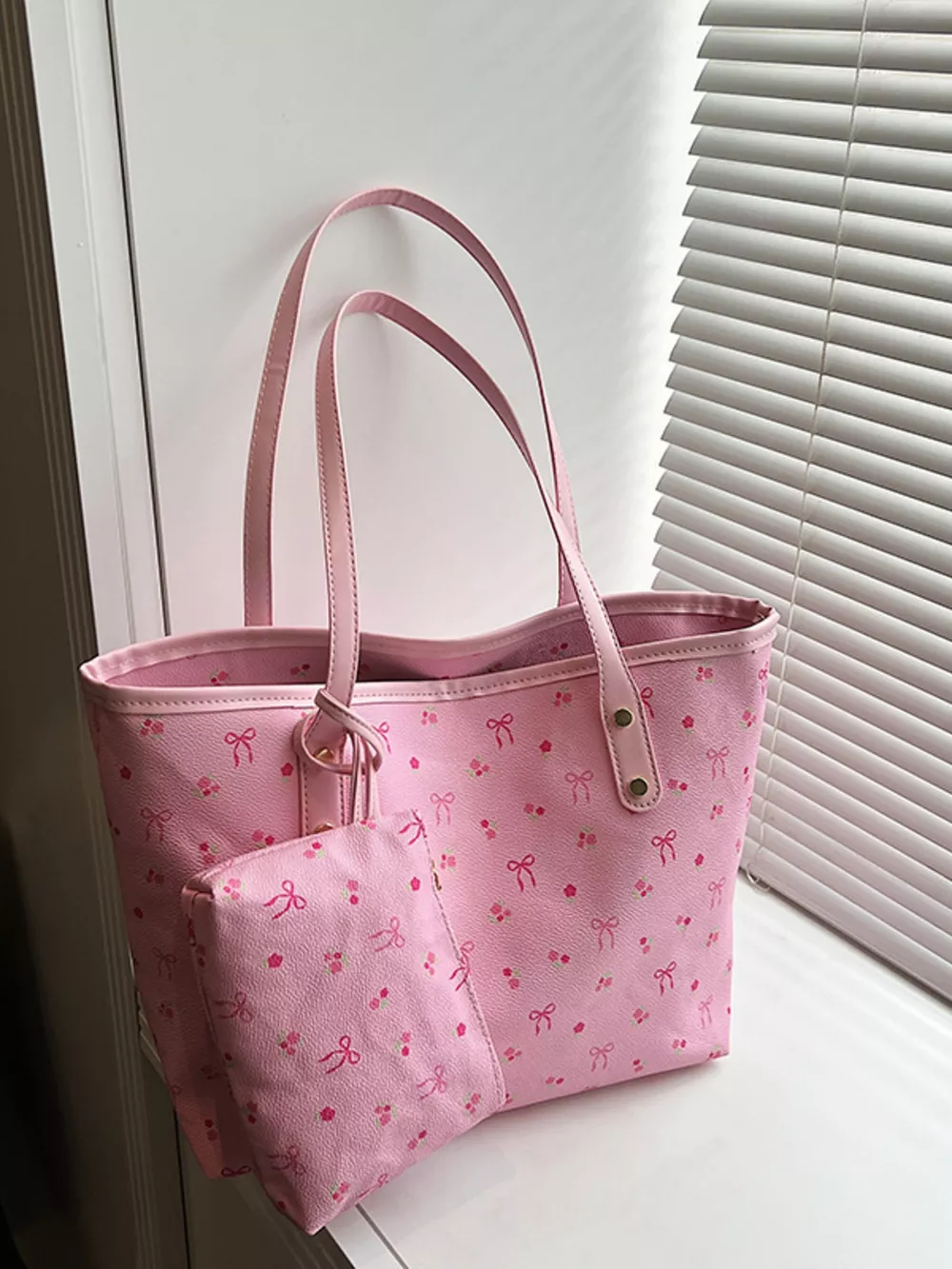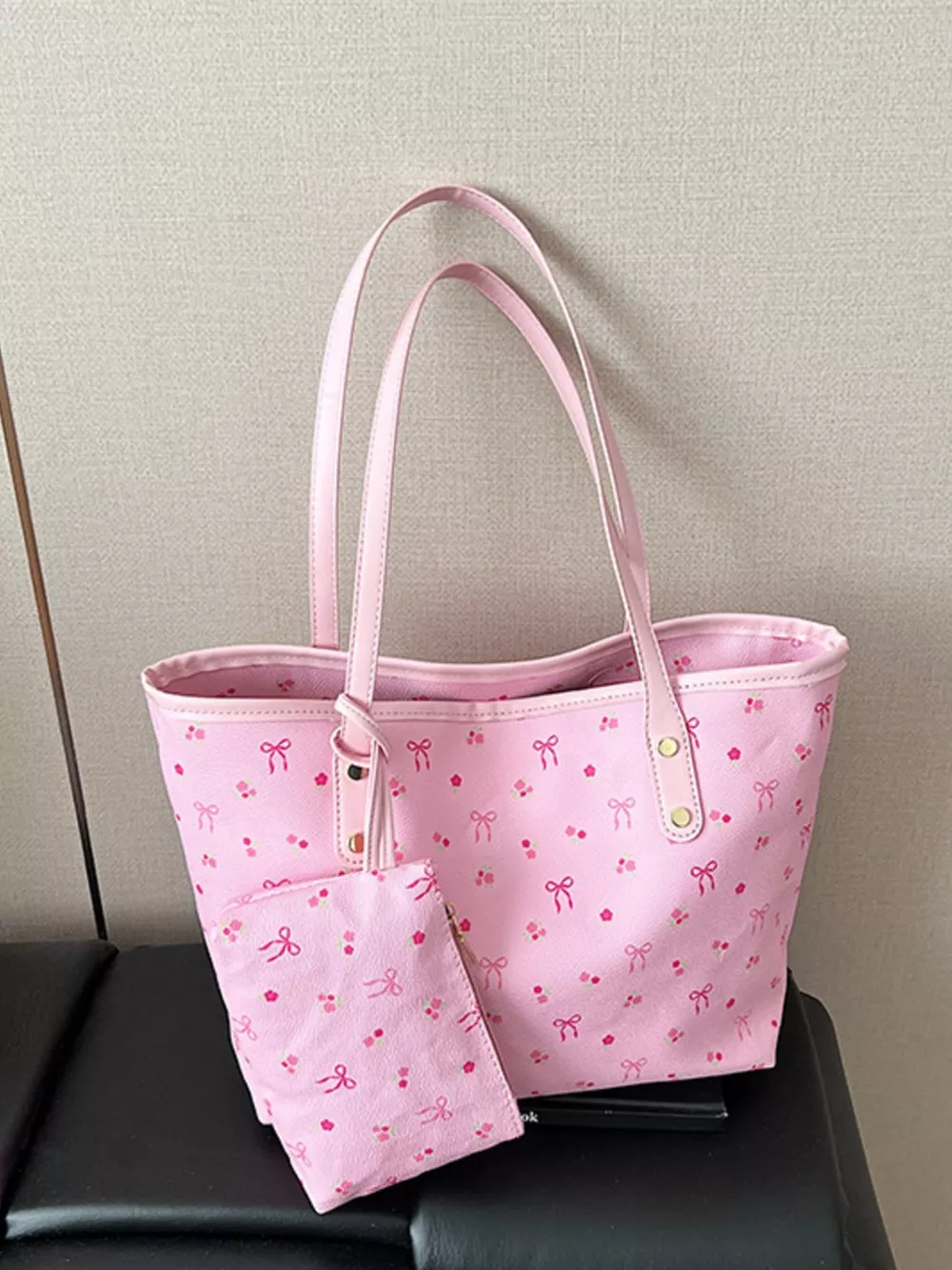 Printed Tote Shoulder Bag with Pouch