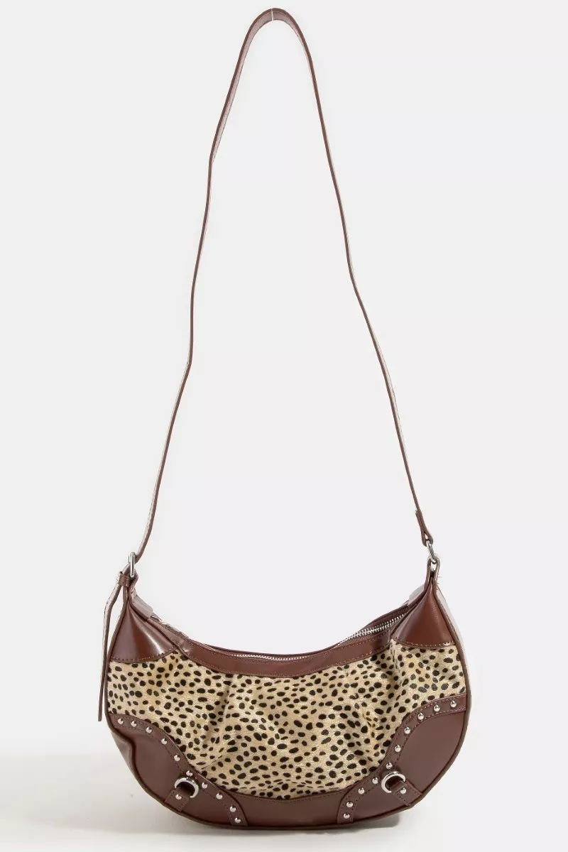 Fame Spotted Leopard Print Half Moon Shoulder Bag