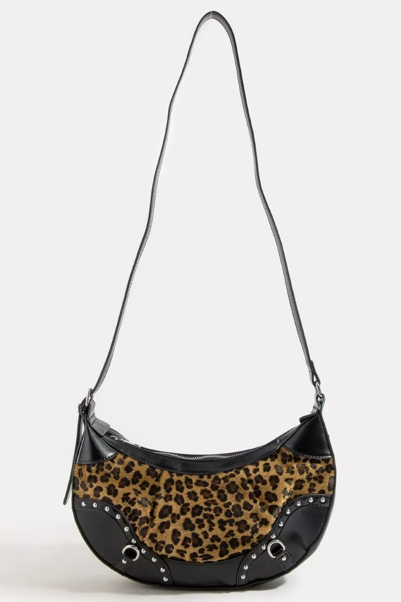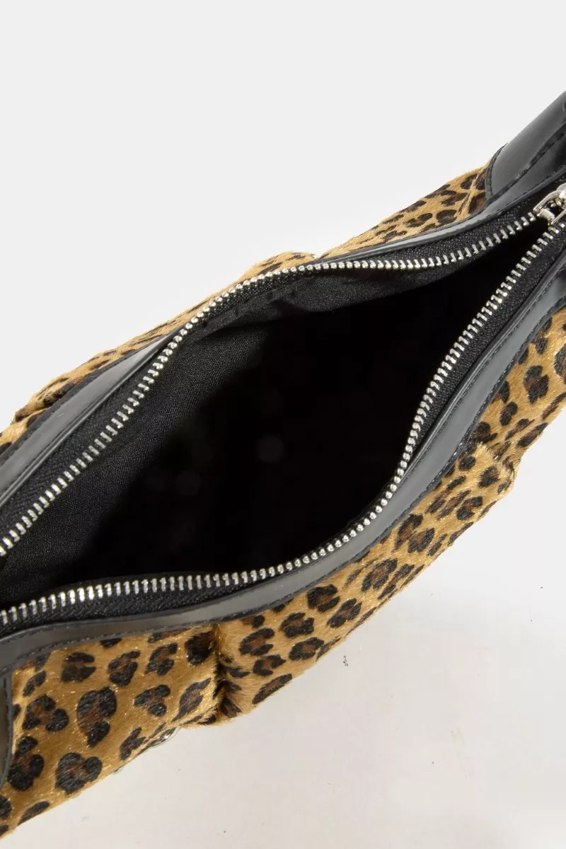 This stylish shoulder bag features a fashion leopard print design, accented with studded detailing for an edgy look. The hobo style offers a relaxed and comfortable fit, while the adjustable shoulder strap allows for customizable wear. Crafted from durable materials, this bag is perfect for everyday use. The zipper closure ensures the security of your belongings. Its versatile design makes it suitable for various occasions, adding a touch of fashion to any outfit. The bag is made of faux leather and faux fur.