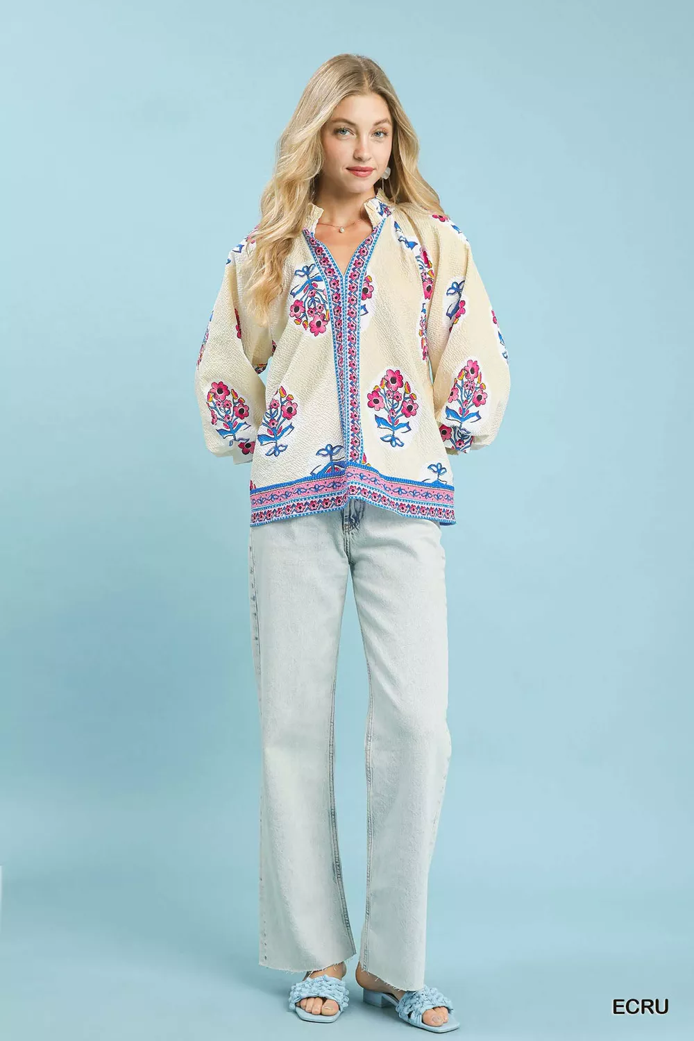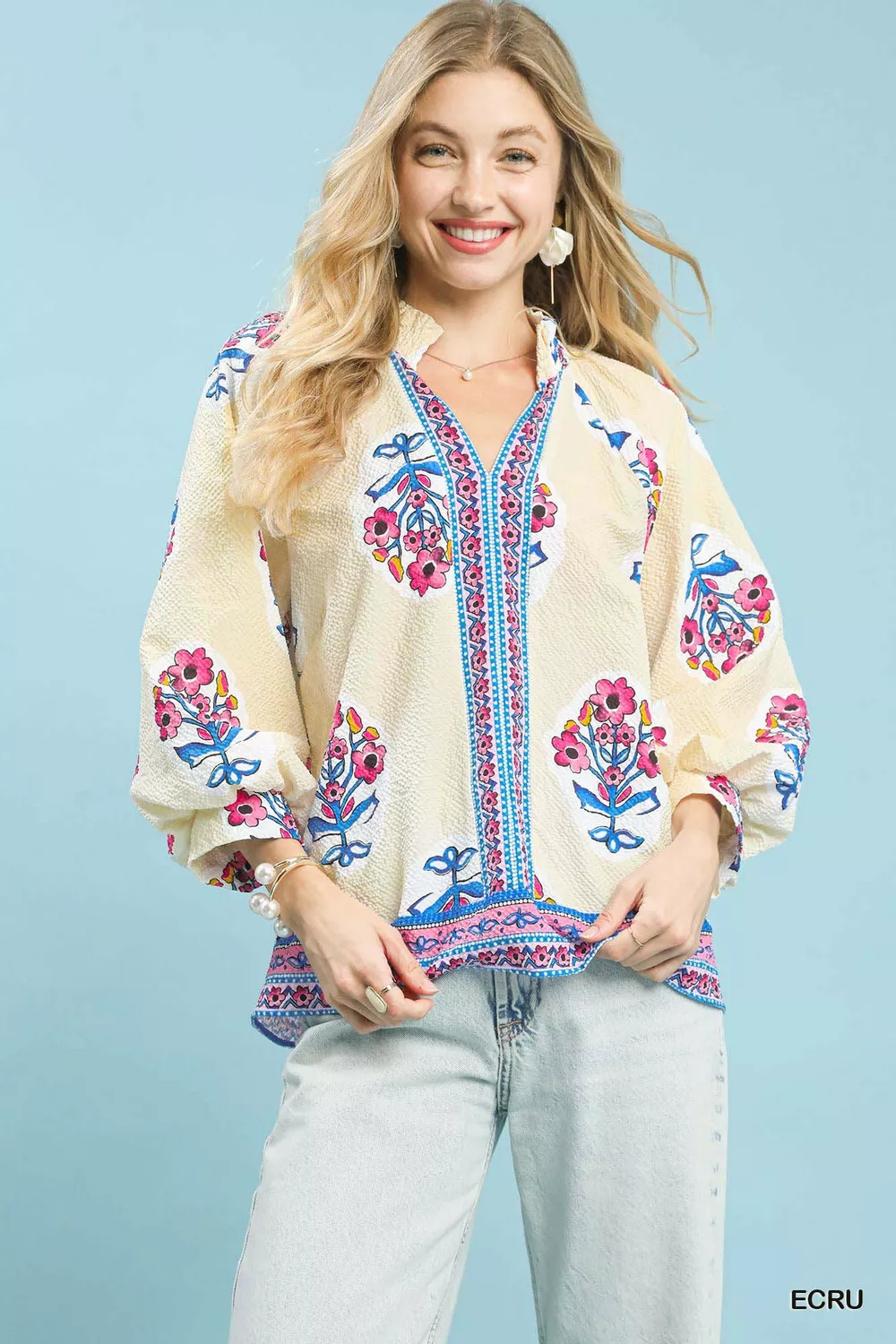 Umgee Boho Floral Print Tunic Blouse