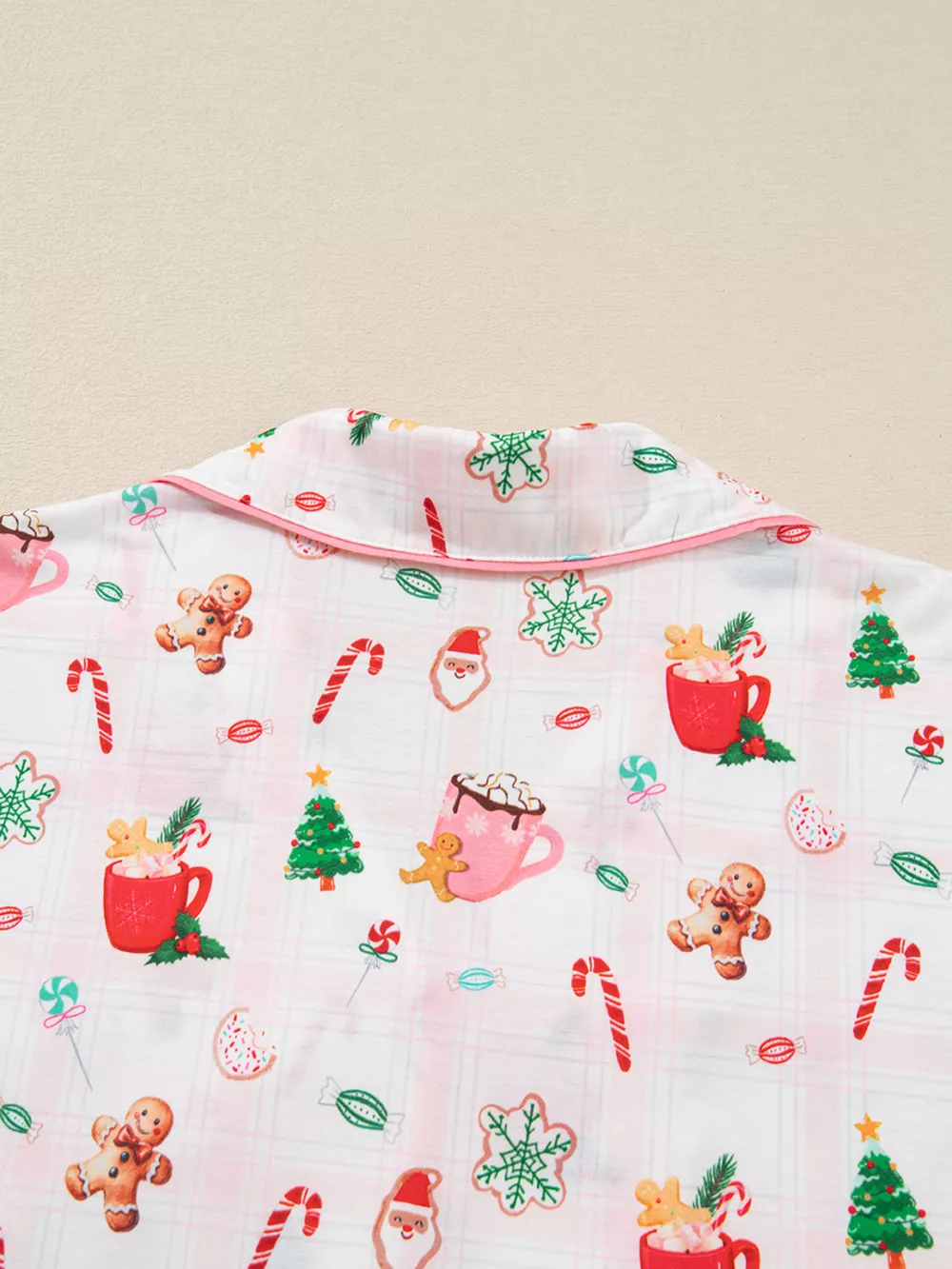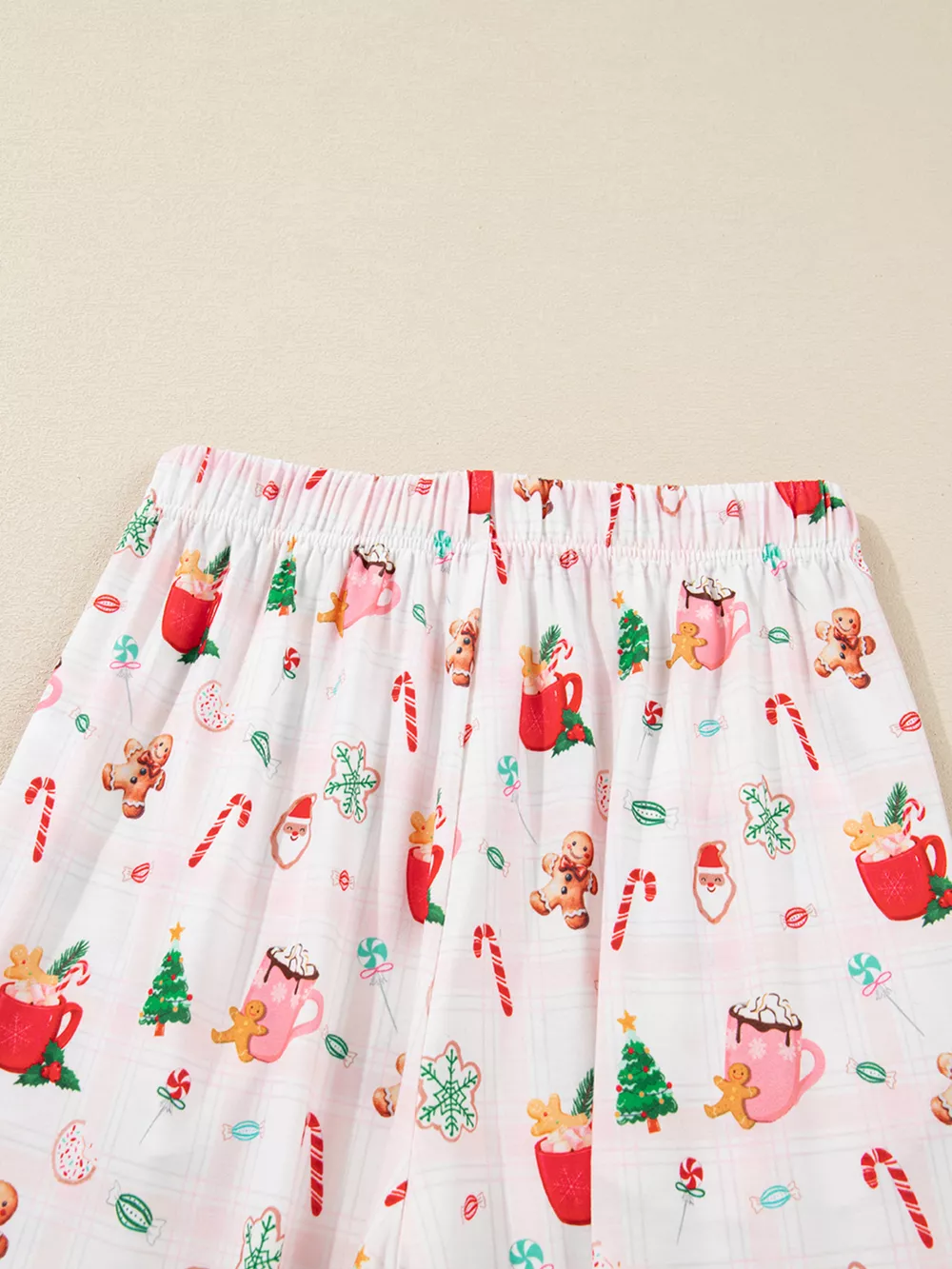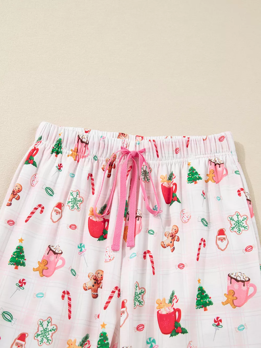 Christmas Spirit Cute Holiday Print Short Sleeve Shirt and Pants 2pcs Pajama Set