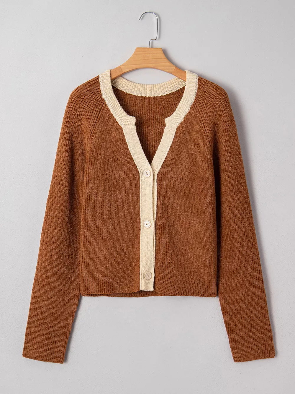 Contrast Knit V Neckline Cardigan