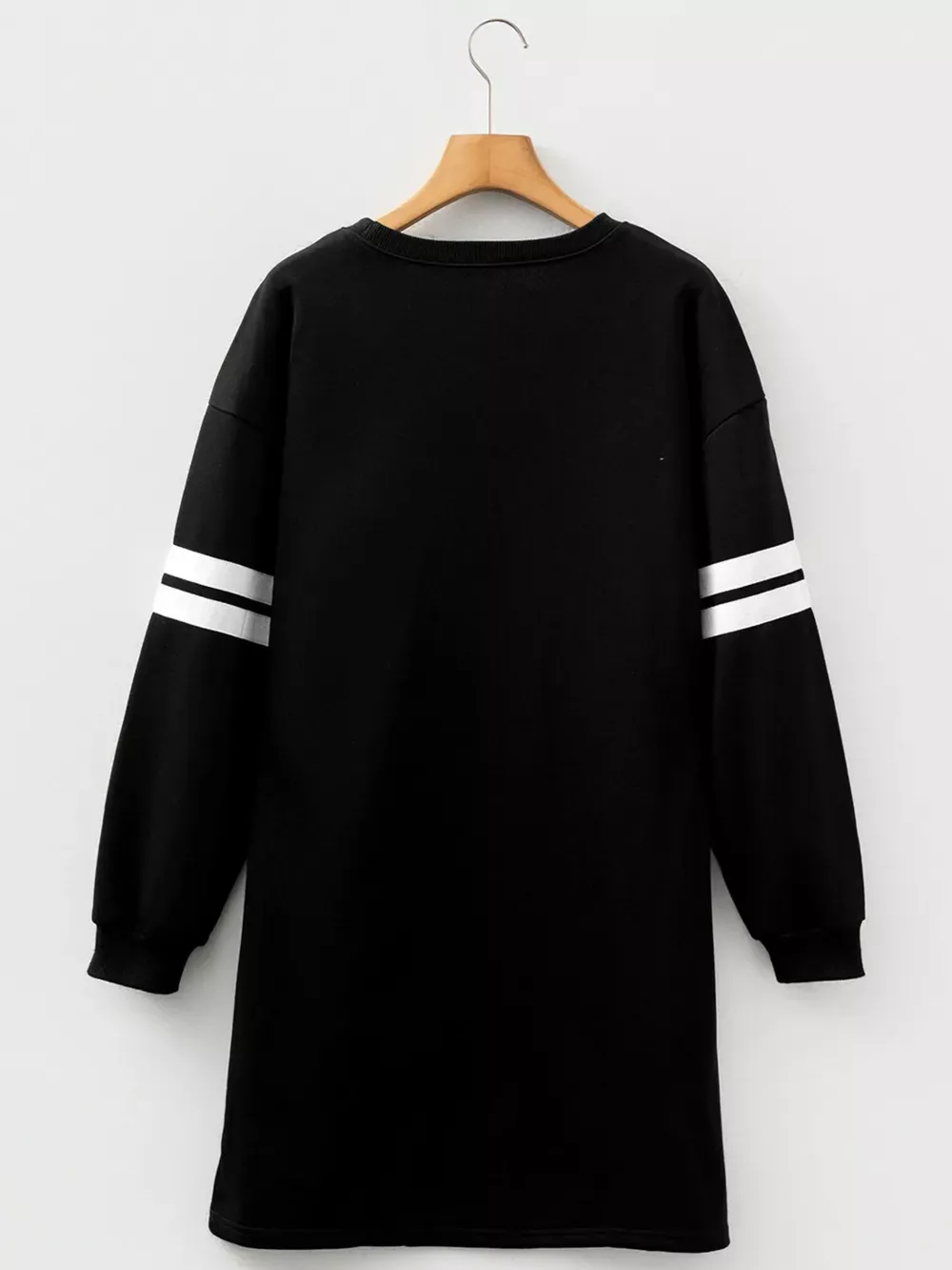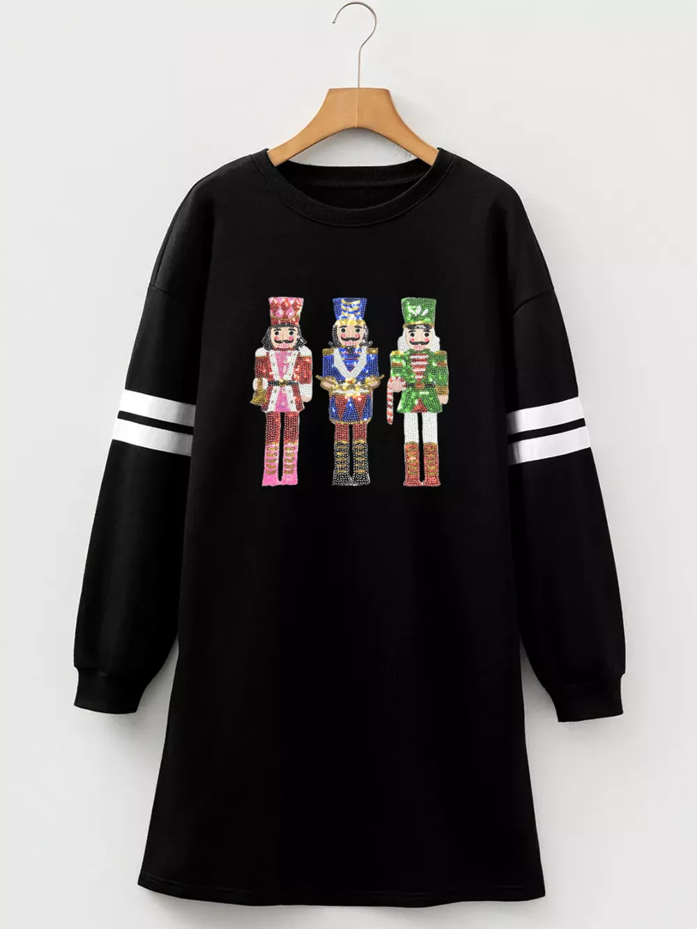 Christmas Sequin Nutcracker-man Graphic Varsity Striped Sleeve Sweatshirt Dress