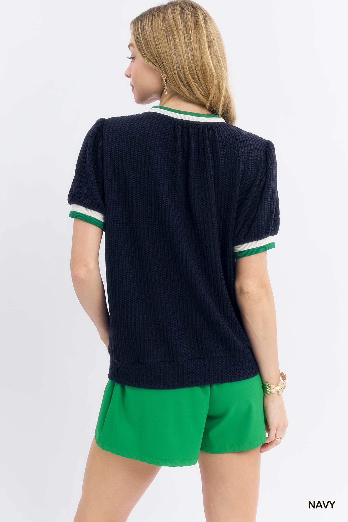 The Puff Sleeve Knit Top is a chic and stylish wardrobe staple with a trendy twist. It features a classic crew neckline with contrast rib trim for added visual interest. The short puff sleeves add a touch of femininity and flair to the design. With a ribbed hem and contrasting details, this top offers a modern and sophisticated look. Please note that this top is not lined, allowing for breathability and a lightweight feel. Pair this versatile top with your favorite bottoms for a fashionable and comfortable outfit.