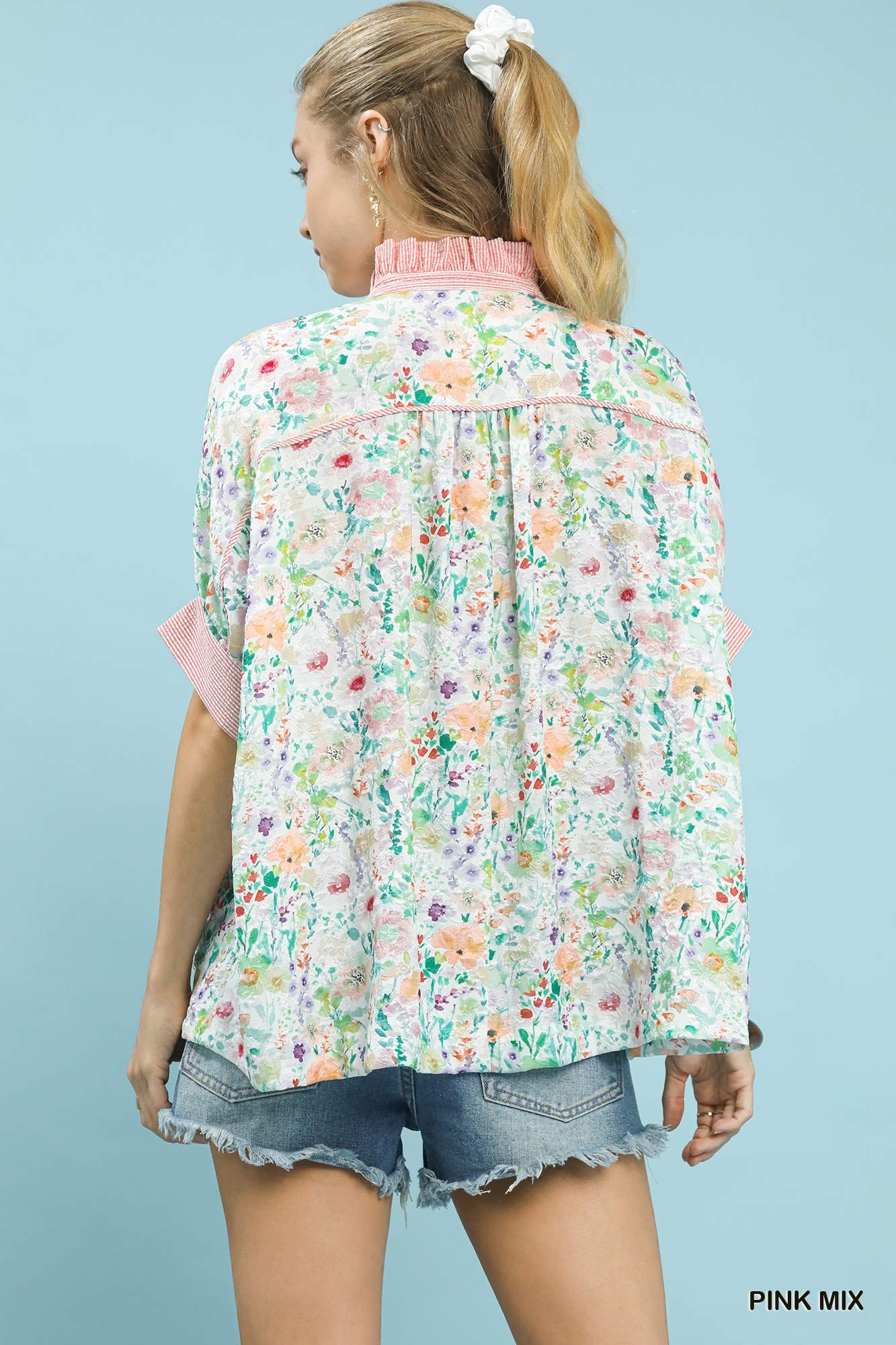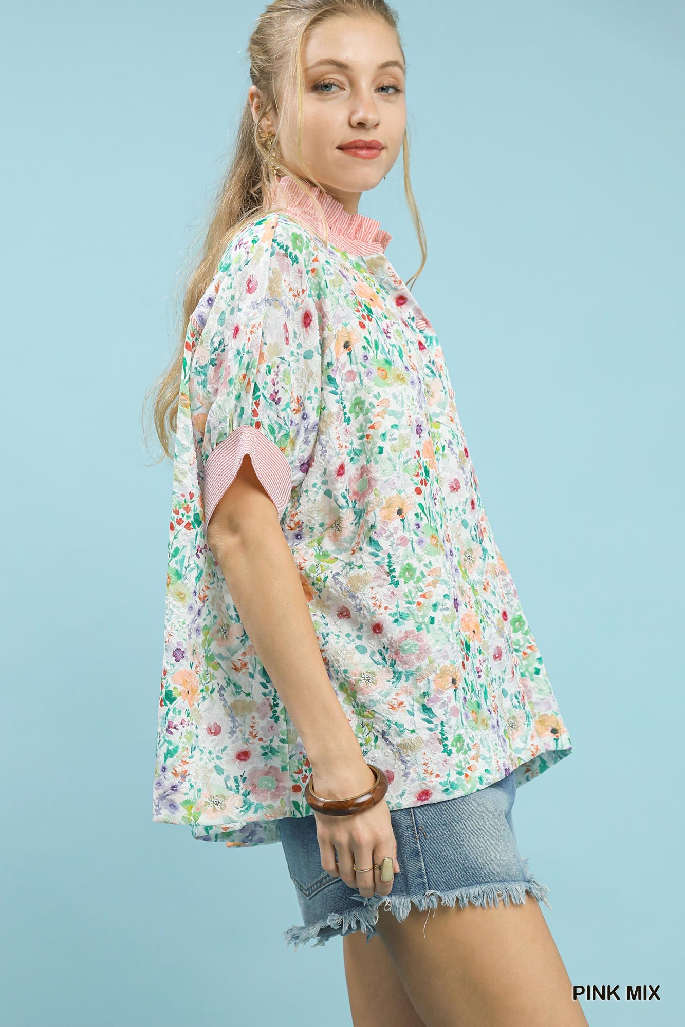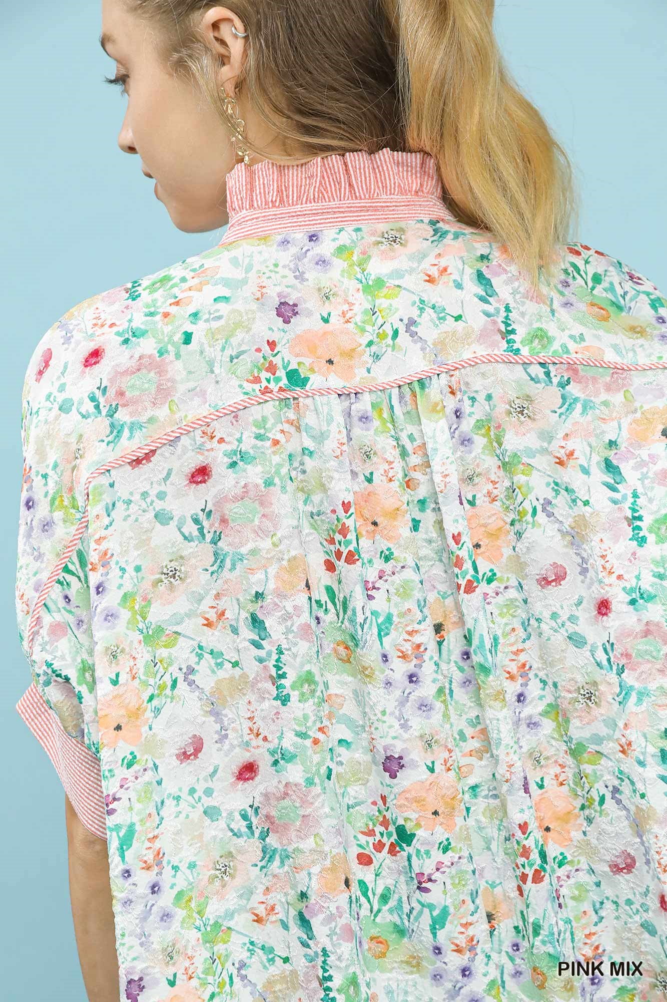 Umgee Jacquard Floral Print Button-Down Shirt