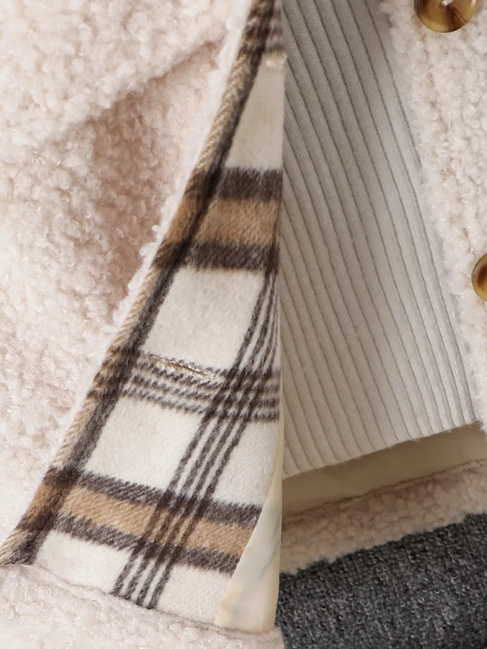 Children's Cozy Plaid Sleeve Fleece Jacket