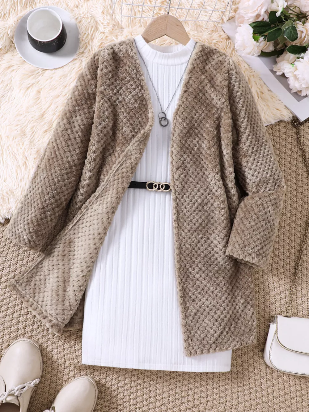 Children's Textured Sweater Dress and Open Front Cardigan Set