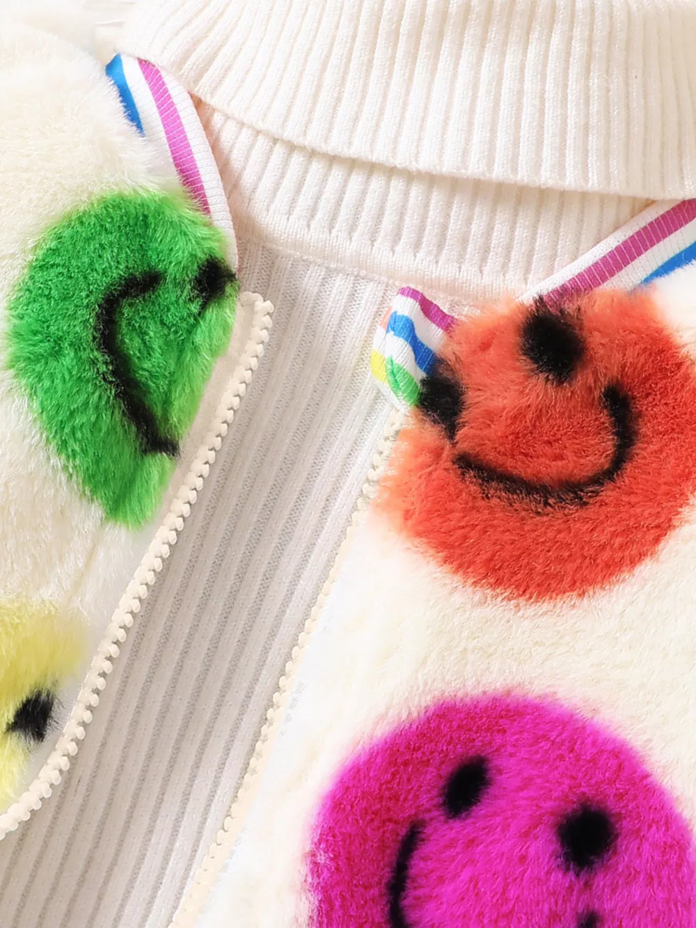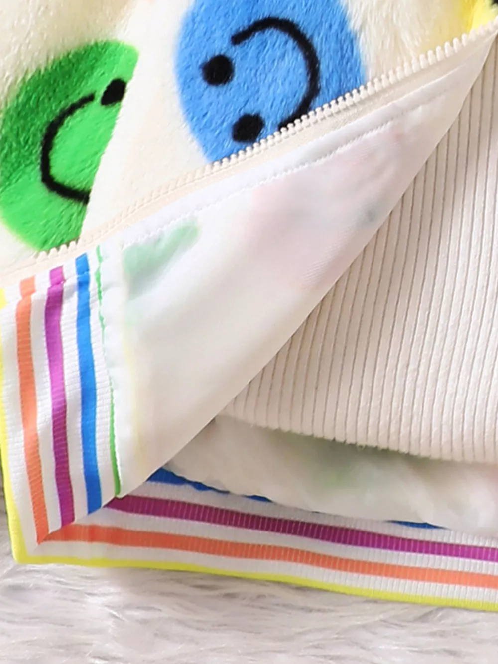 Children's Cheerful Smiley Face Print Plush Jacket