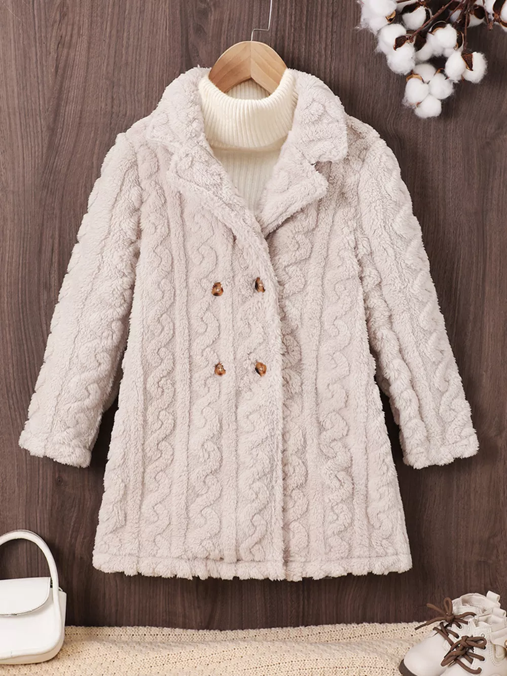 Children's Cozy Textured Double-Breasted Outerwear