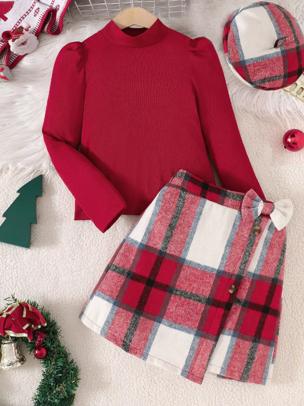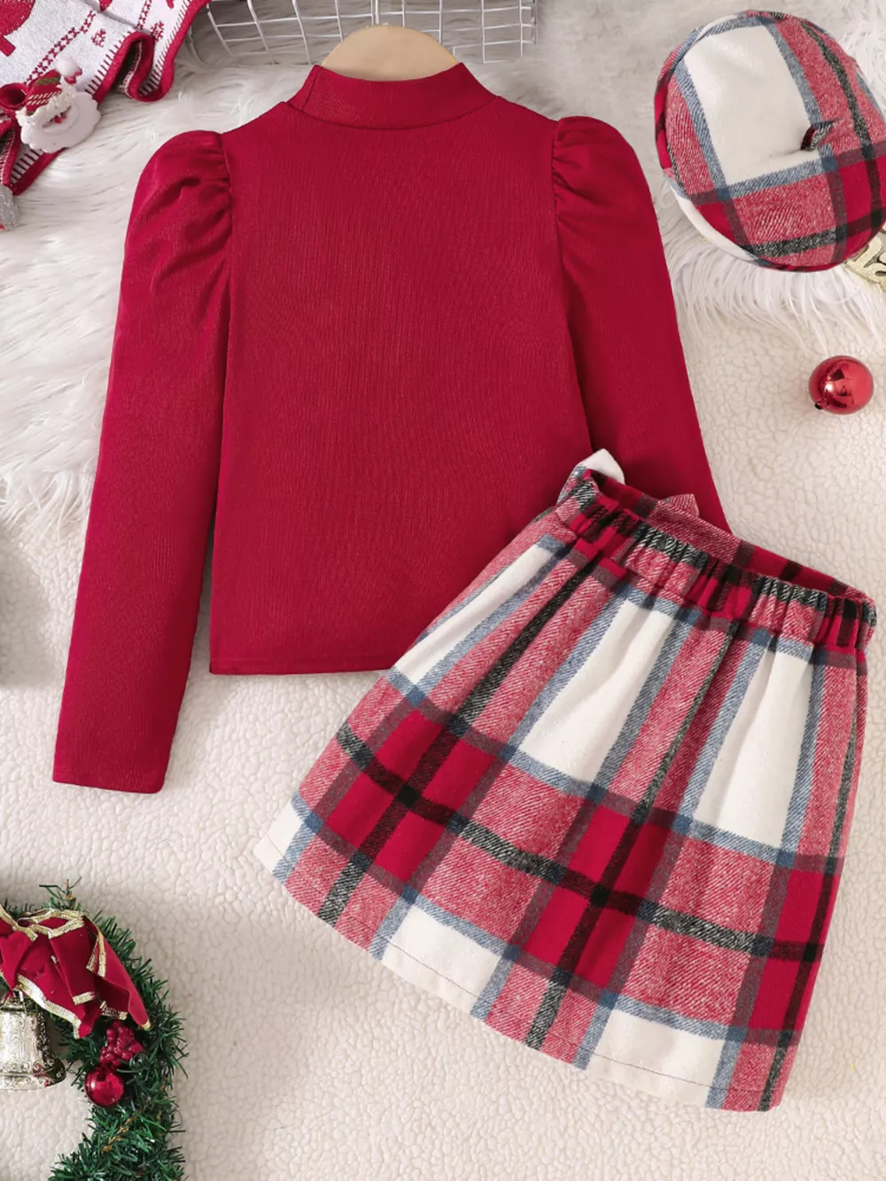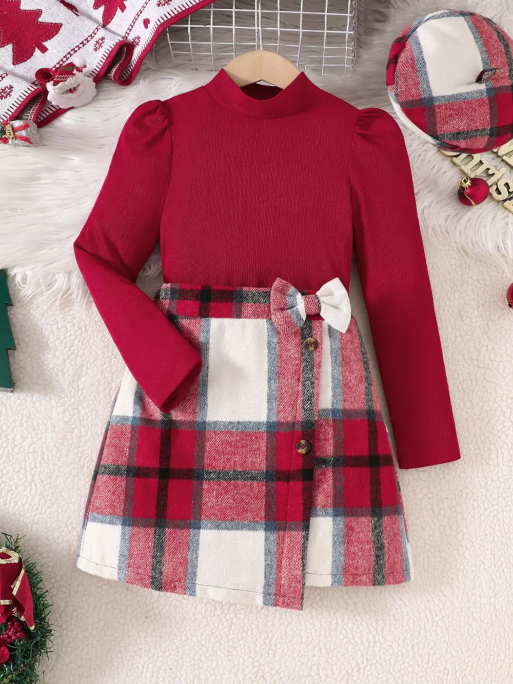 Children's Long Sleeve Top and Plaid Skirt Set