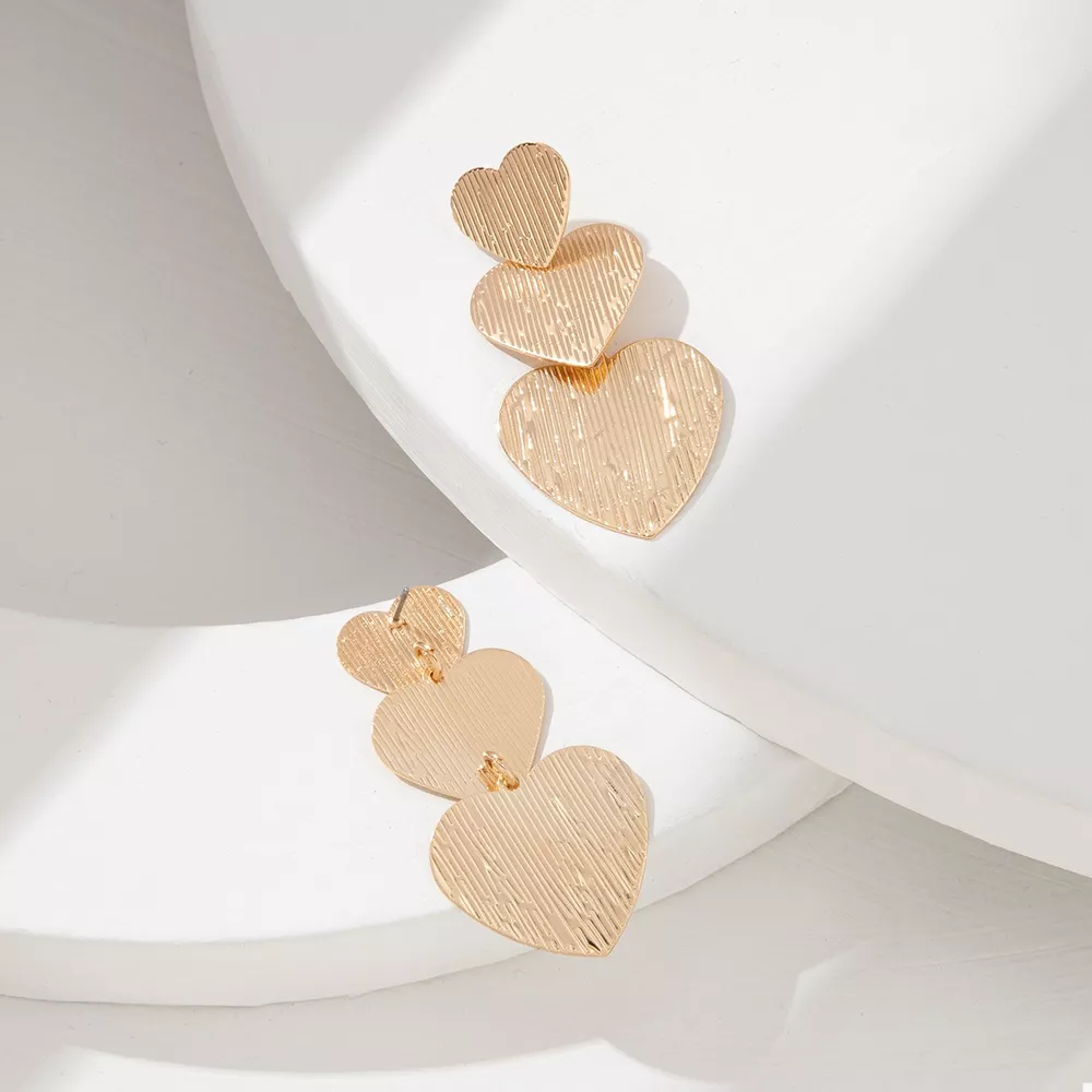 Golden Heart Dangle Earrings