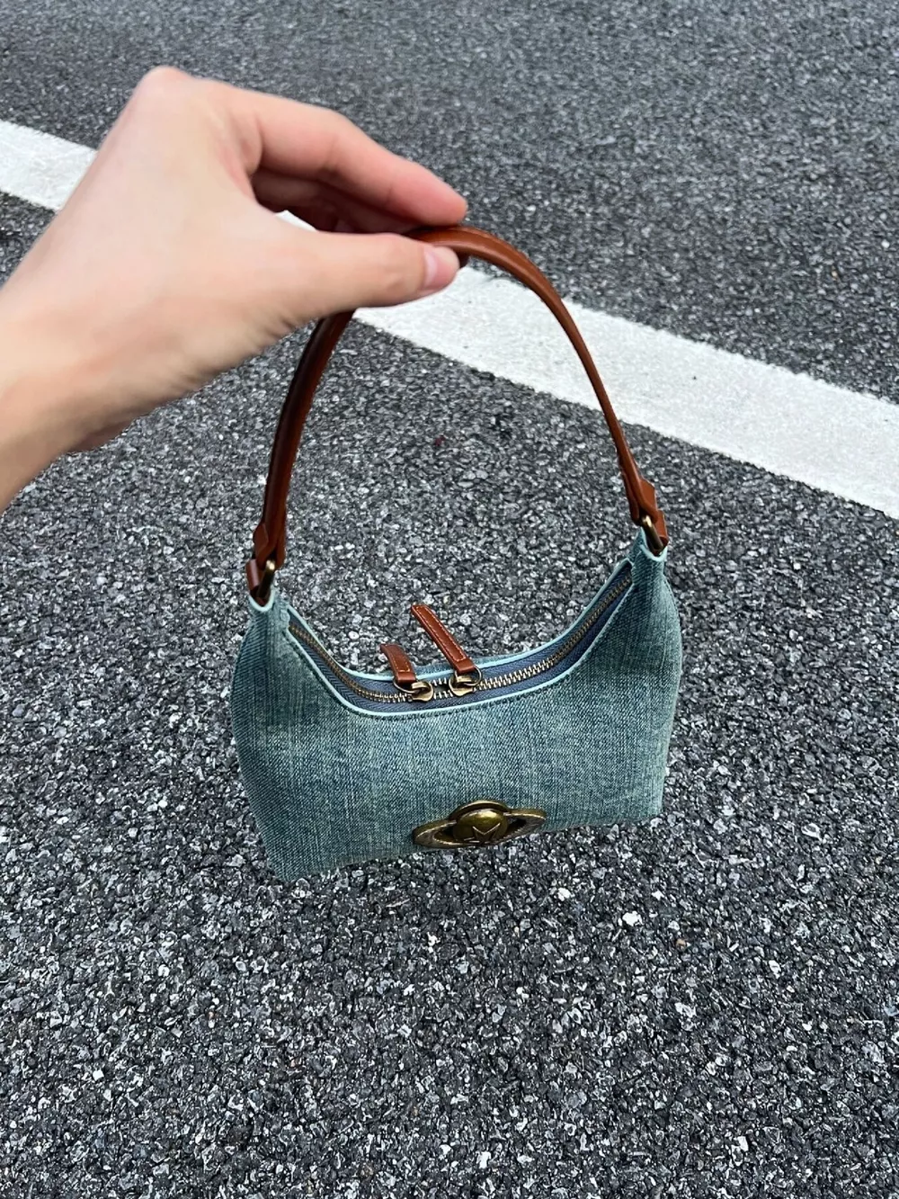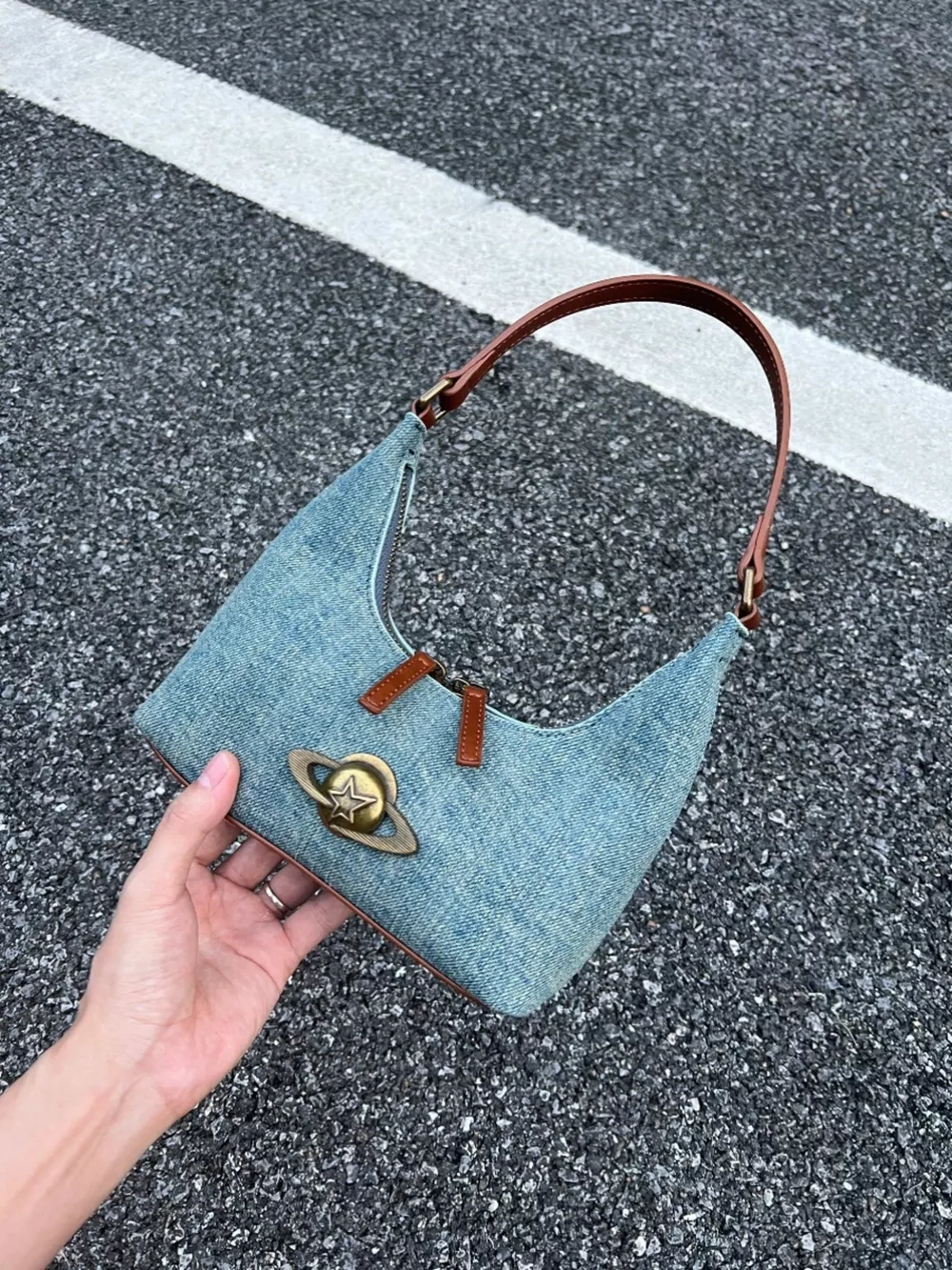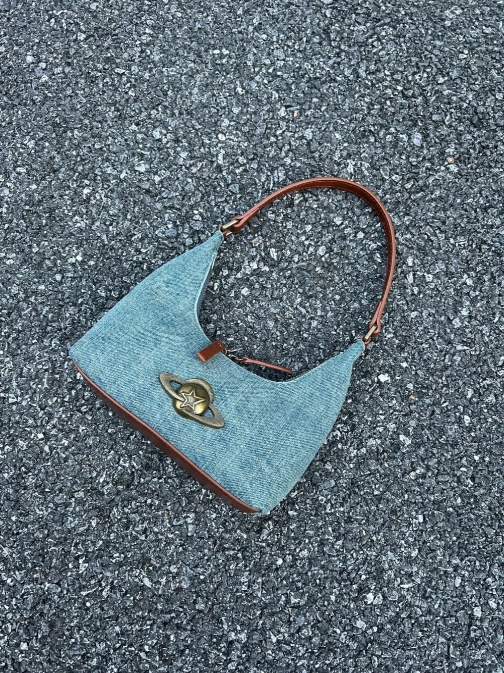 Denim Planet Decor Shoulder Bag